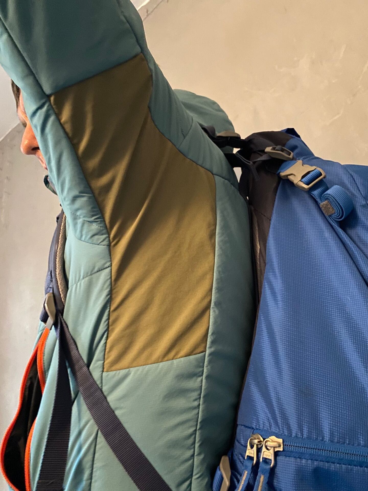 Protože při výletech mívám většinou batoh, oceňuji využití kapes spíše k větrání při výstupu nebo uložení méněcenných věcí (kapesník, sušenka), u kterých se při případné ztrátě nic nestane. Jsem rád, že jsou kapsy dostupné i při zapnutém bederním pásu batohu. Jako přednost vnímám kapuci, která nepřekáží a v případě potřeby pomůže (že se pod ni nevejde přilba, je už jiná věc). Ocenil bych ale možnost utažení kapuce, gumový lem sice dobře drží, ale kapuci si neutáhnete přesně podle hlavy.