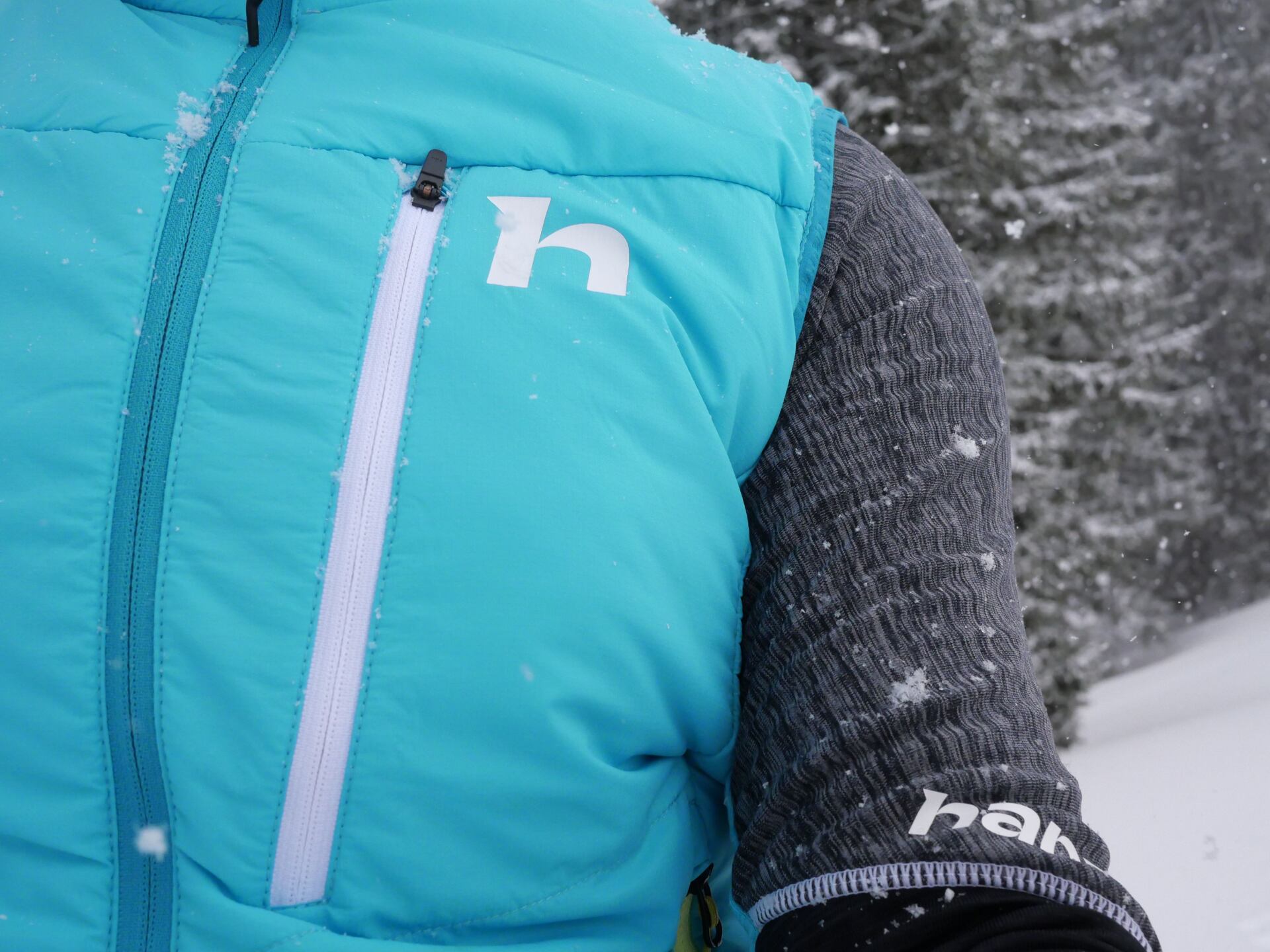 Toto „kombo“ jsem velmi ocenila na skialpech za větrného dne - člověk tak není odsouzen k pocení pod neprodyšnou bundou. Paže dýchaly a odváděly přebytečné teplo, zatímco tělo bylo udržováno v teple. Vesta nepropustila vítr ani chlad.