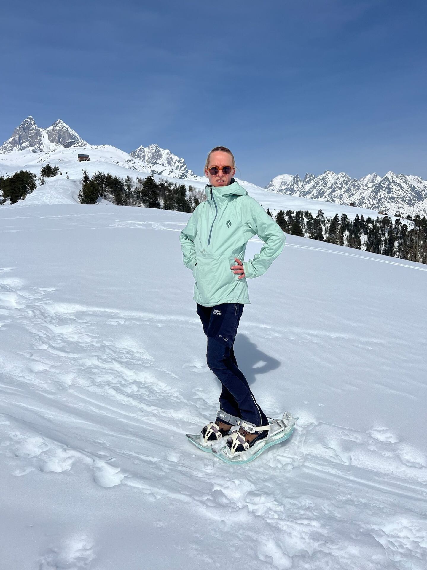 Vyrážíme na hřebenovou sněžnicovou túru, která patří mezi velmi lehké túry tady v okolí. Díky teplotám nad nulou je sníh mokrý a bunda ze začátku velice dobře odolává. Po půlhodině chůze začínám mít v bundě Anorak pocit jako když jsem ve skleníku. Přijde mi, že vůbec nedýchá, a tak si odkládám vrstvu pod bundou, která je v oblasti rukávů a ramenou mokrá. Nedokážu vyhodnotit, zda Anorak propustil vodu, nebo se to zapařilo díky ne úplně optimální prodyšnosti v tomto počasí. Oblékám opět Anorak, jelikož je to moje jediná vrstva proti dešti a sněhu.