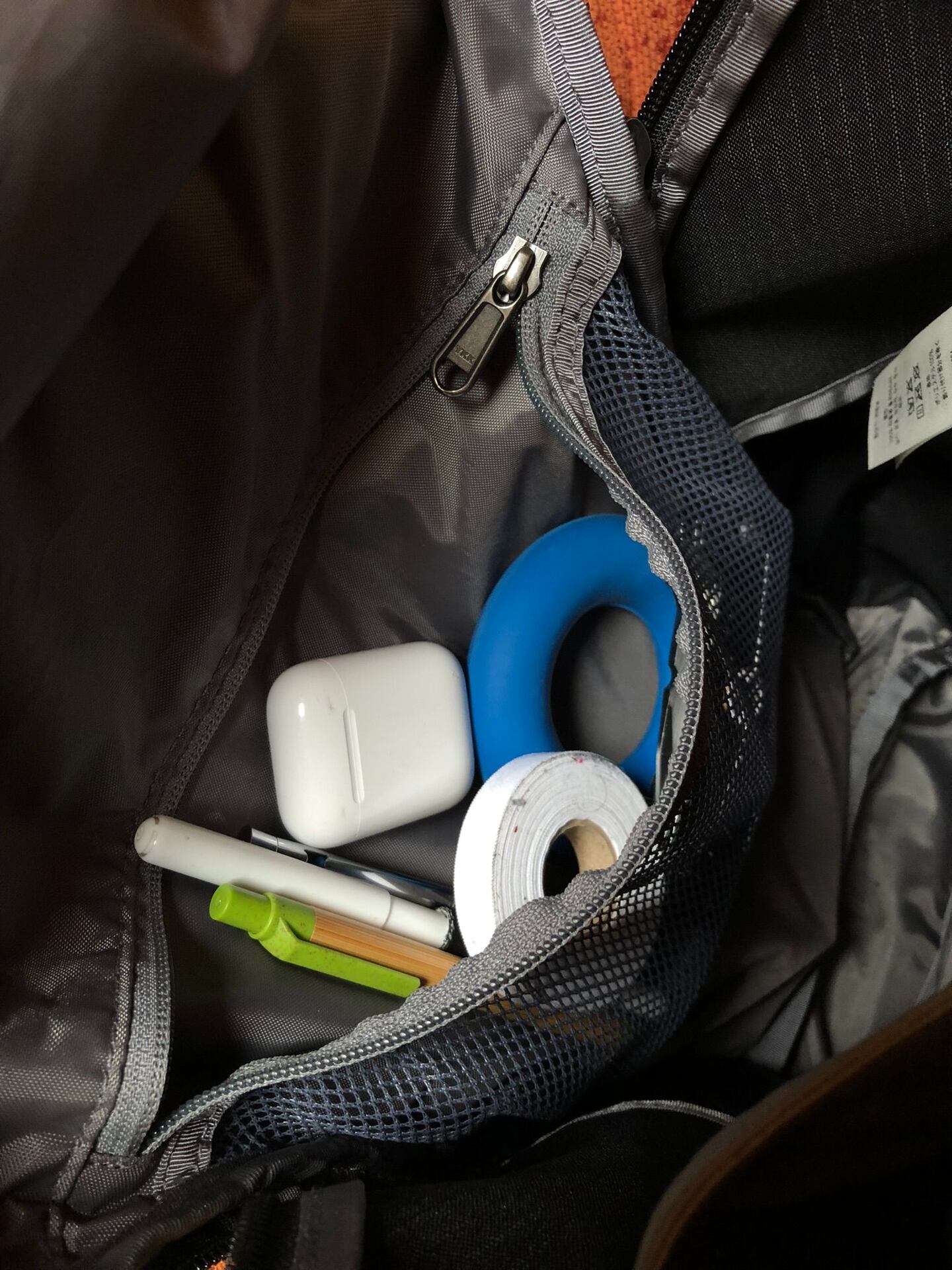 Další praktickou kapsičku máme ve velké vnitřní kapse. Síťovaná zapínací kapsička je ideální na propisky, sluchátka a další drobnosti, které sebou tahám.