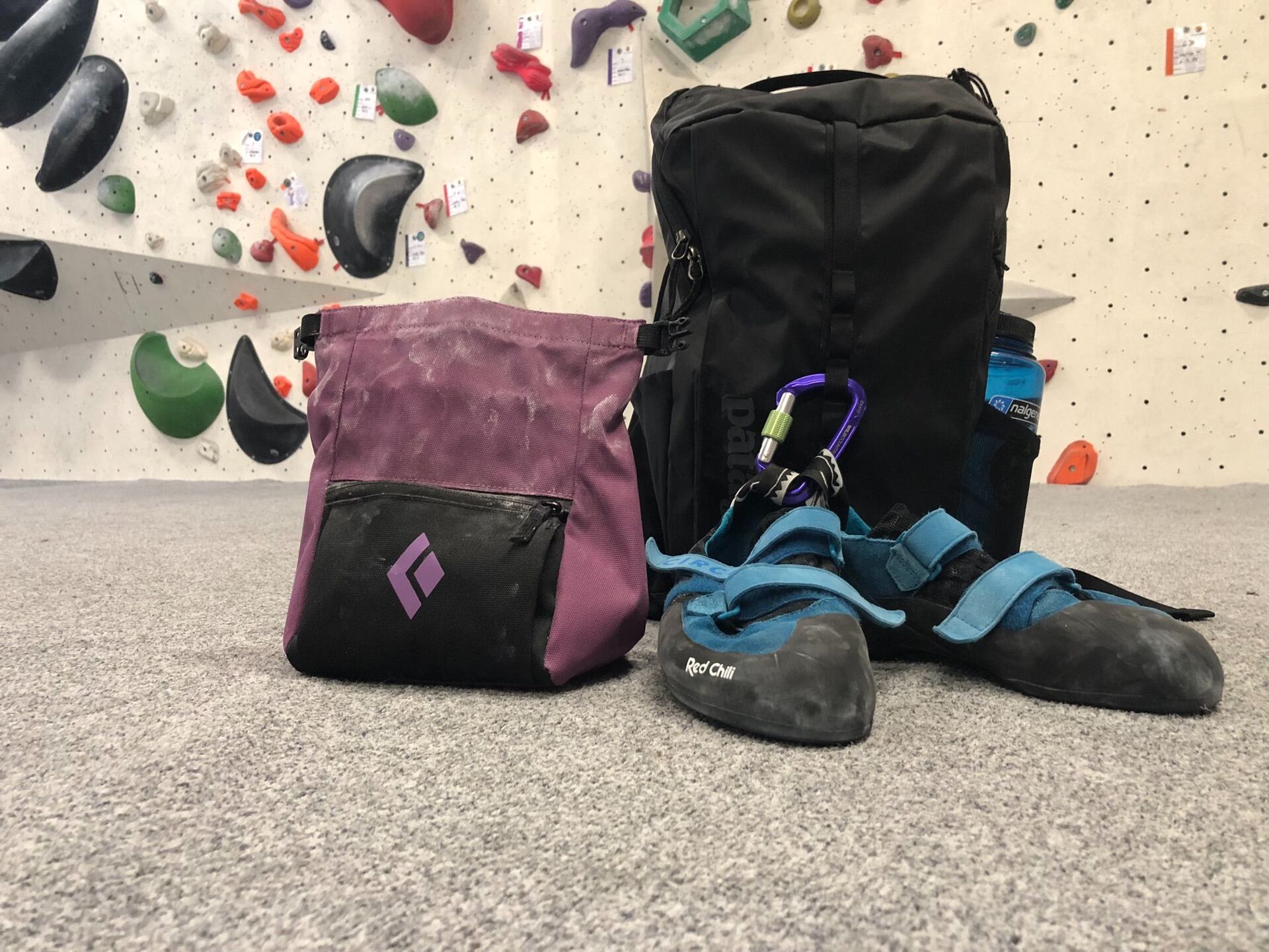 Do batohu se mi vešly věci pro odpolední lezeníčko s přáteli na naší liberecké boulder stěně - maglajz pytlík od Black Diamondu i oblečení, které jsem kvůli lepší organizaci v batohu sbalil do obalu Dry Sack od Osprey. Lezečky jsem přes karabinu zavěsil z vnější strany batohu a díky tomu ušetřil místo uvnitř.