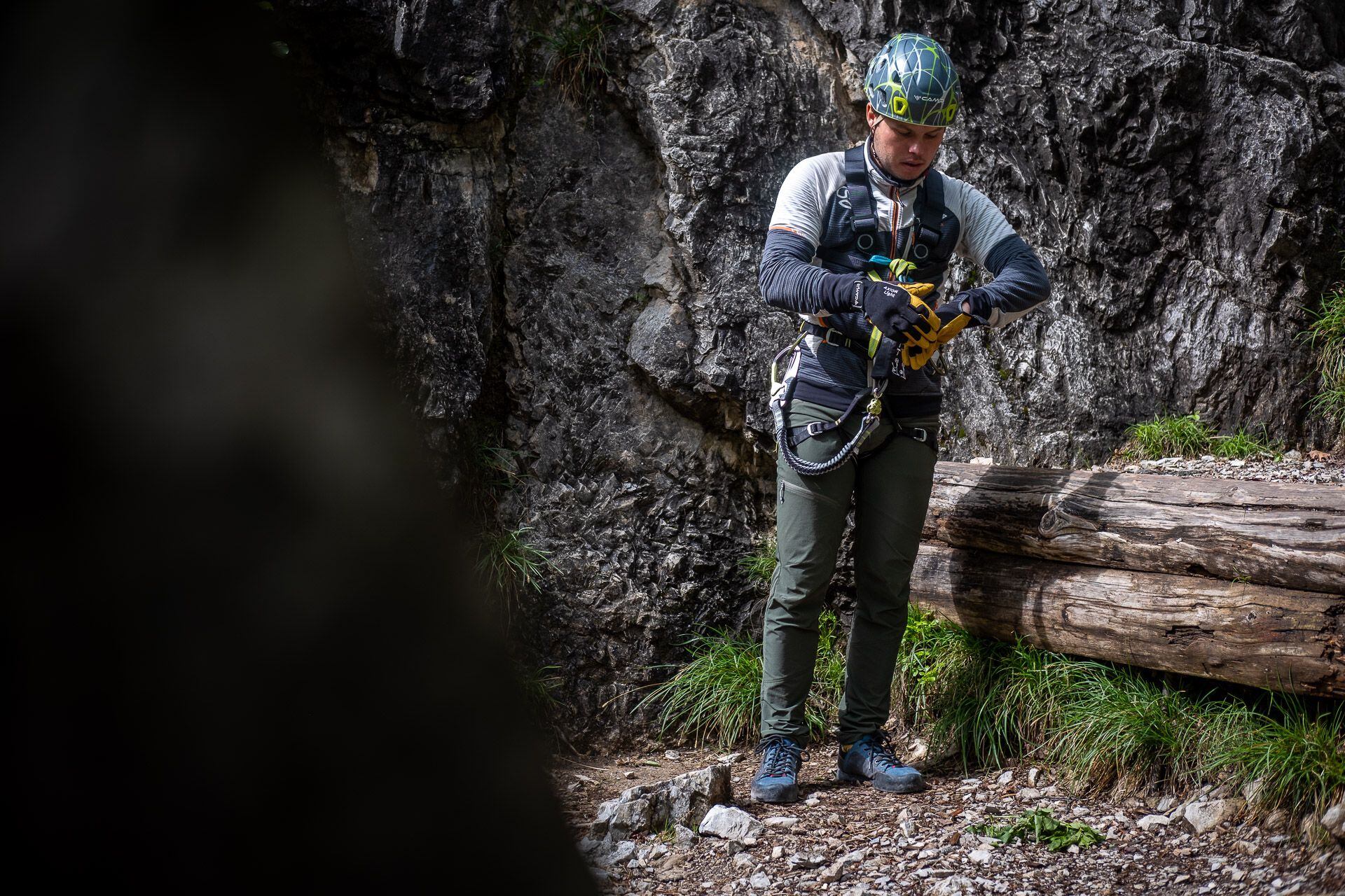 Při příchodu pod ferratu by mělo být nasazení helmy na hlavu prvním úkonem, který uděláte. Už jste v lezeckém terénu a nad vámi mohou být jiní lezci. A co když od nich něco upadne? Tenhle jednoduchý návyk už zachránil nejednoho lezce od maléru.
