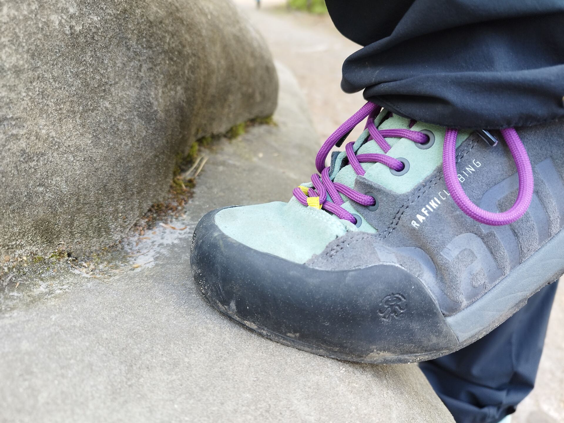 Rafiki Massi jsou svým určením sice primárně městské boty, designéři však mysleli i na nezbytné vychytávky pro toulky přírodou nebo výlety do skal. Nechybí gumová obsázka špičky, která chrání proti oděru, ale skvěle zafunguje i ve chvíli, kdy se rozhodnete použít boty místo lezeček.