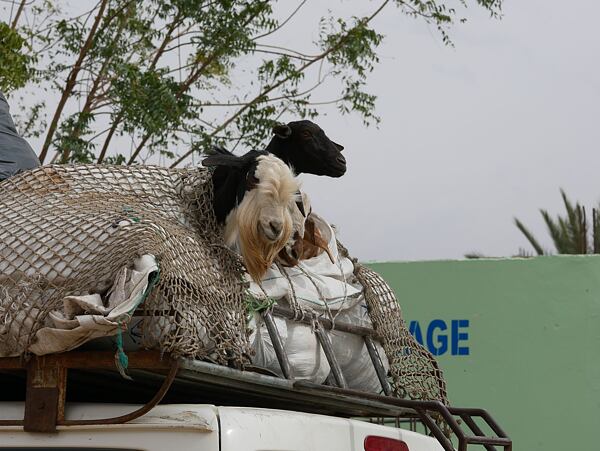 Cestou na jih míjíme místní zajímavost. „Kozy na stromech!“ Místní zvířata se velmi brzy naučila, že se zde dá jíst nejen tráva a malé keříky, ale také listy arganových stromů. Takže nejen, že se pro ně rády natahují, seč jim krky stačí, ale vynalézavé kozy se pro ně naučily i šplhat po větvích. A je to vskutku jedinečná podívaná. Až člověku přijde, že se ocitl v zemi pohádek, kde běžné fyzikální zákony neplatí.