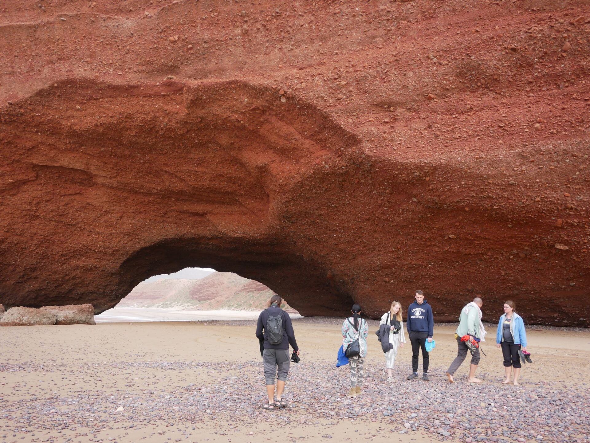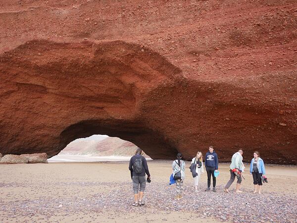 Kolem páté hodiny odpoledne zastavujeme u pláže Legzira. Ještě do nedávna byla známá dvěma velkými oblouky skál, kterými se dalo po pláži projít. Jeden se však bohužel zřítil, takže se zůstal už jen jeden. Ani studená voda, ani foukající vítr nás nemohl odradit od pořádného koupání.