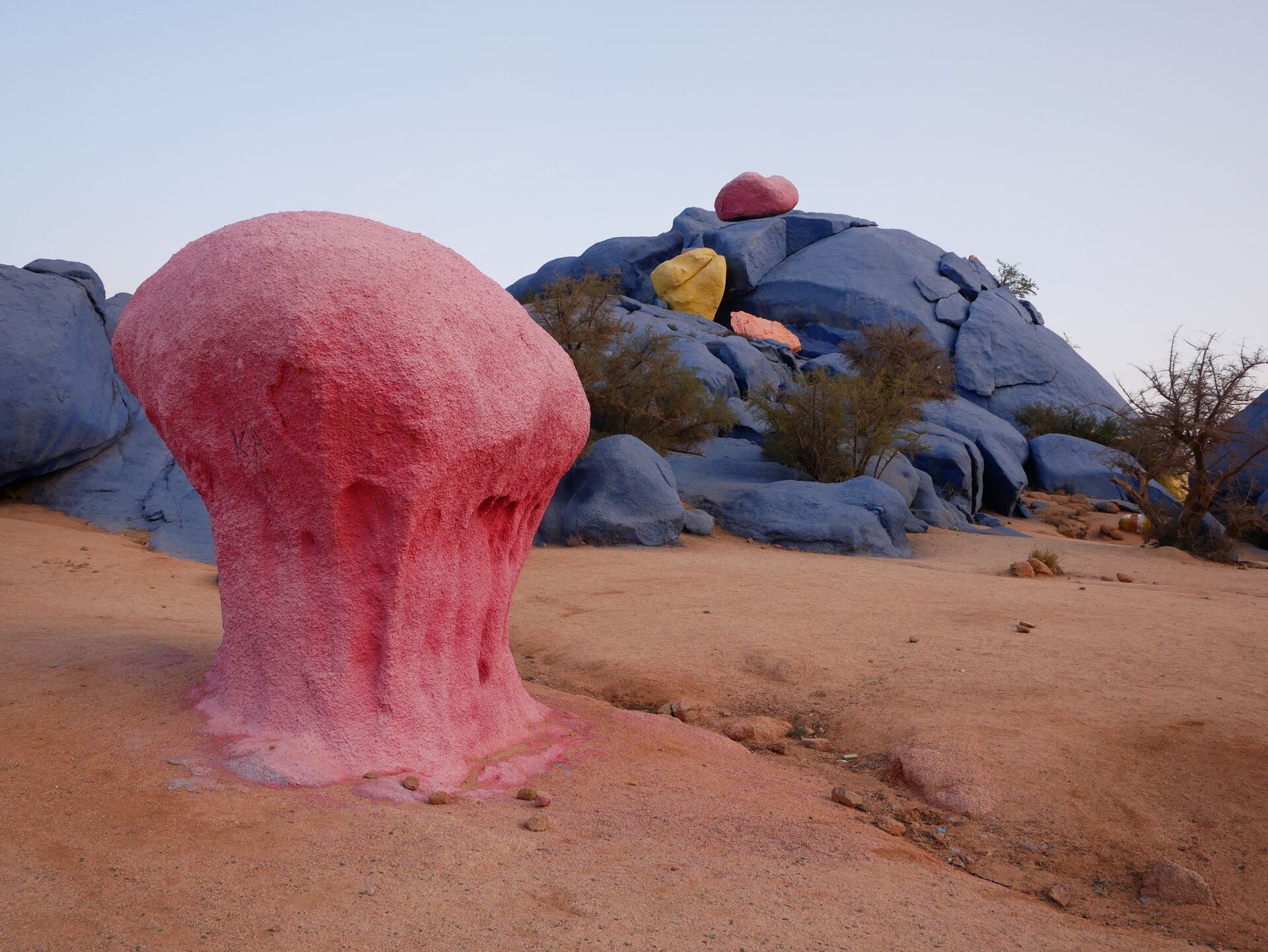 V roce 1984 pomaloval belgický umělec Jean Vérame několik skalních bloků modrou barvou. Někteří říkají, že to udělal ze ztráty milované ženy, jiní, protože byl zkrátka blázen. Nejedná se však o ojedinělý čin tohoto „pouličního“ umělce. Svým stylem, který nazývá „earth art“, namaloval skály například také ve Francii, Egyptě nebo Chadu. Na svůj výtvor spotřeboval bezmála 1 500 plechovek s barvou.