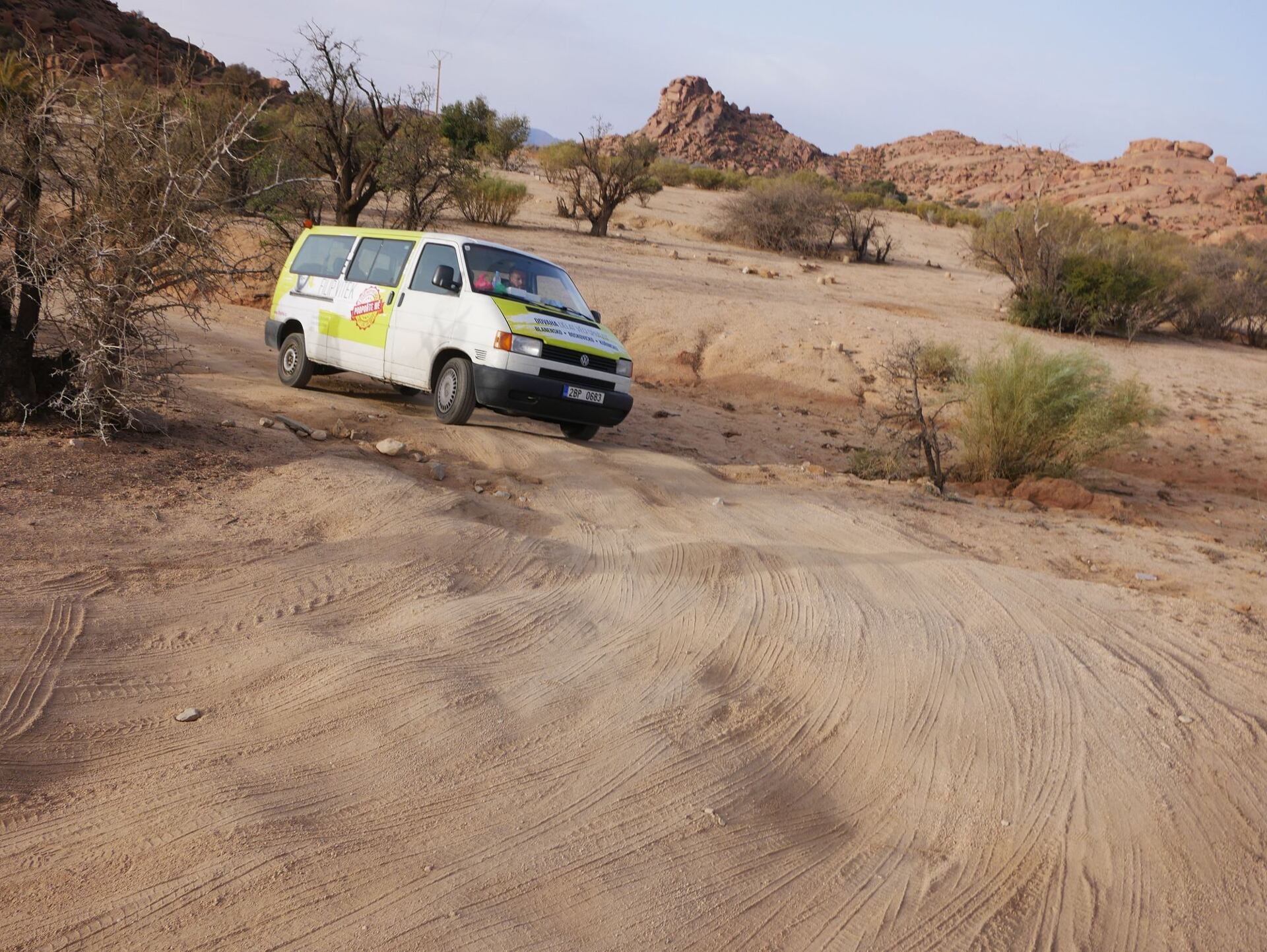 Jaké bylo naše překvapení, když jsme se šplhali klikatou prašnou cestou vzhůru, začal nám před reflektory auta tančit sníh. Sice jen několik vloček, ale i tak, kdo by to byl čekal. Maroko, Afrika, a ono sněží! Noc nepatřila k nejteplejším, ale ranní dobrodružné zkoumání kamenů nás brzy zahřálo a my si užívali výhledy na modré, růžové a žluté balvany všude kolem.