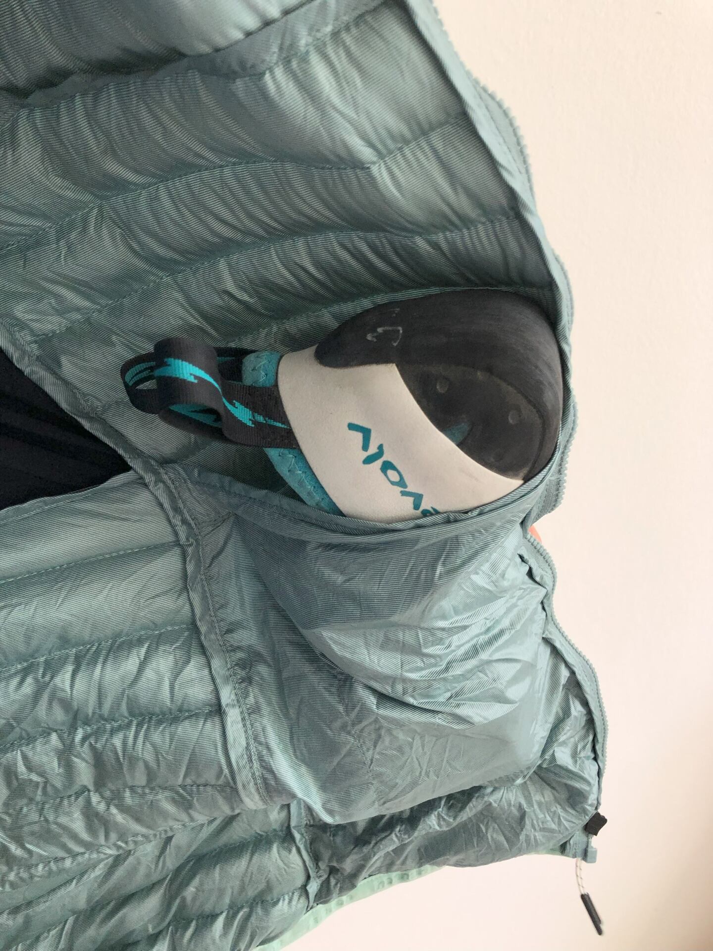 Na vnitřní straně najdete pak další dvě otevřené kapsy, které se dají využít na různé věci a drobnosti. TIP: Do vnitřních kapes se dají strčit například i lezečky. V případě venkovního lezení v chladném počasí a díky umístění kapes vevnitř bundy budou lezečky v teple a dobře se vám do nich pak bude dostávat.