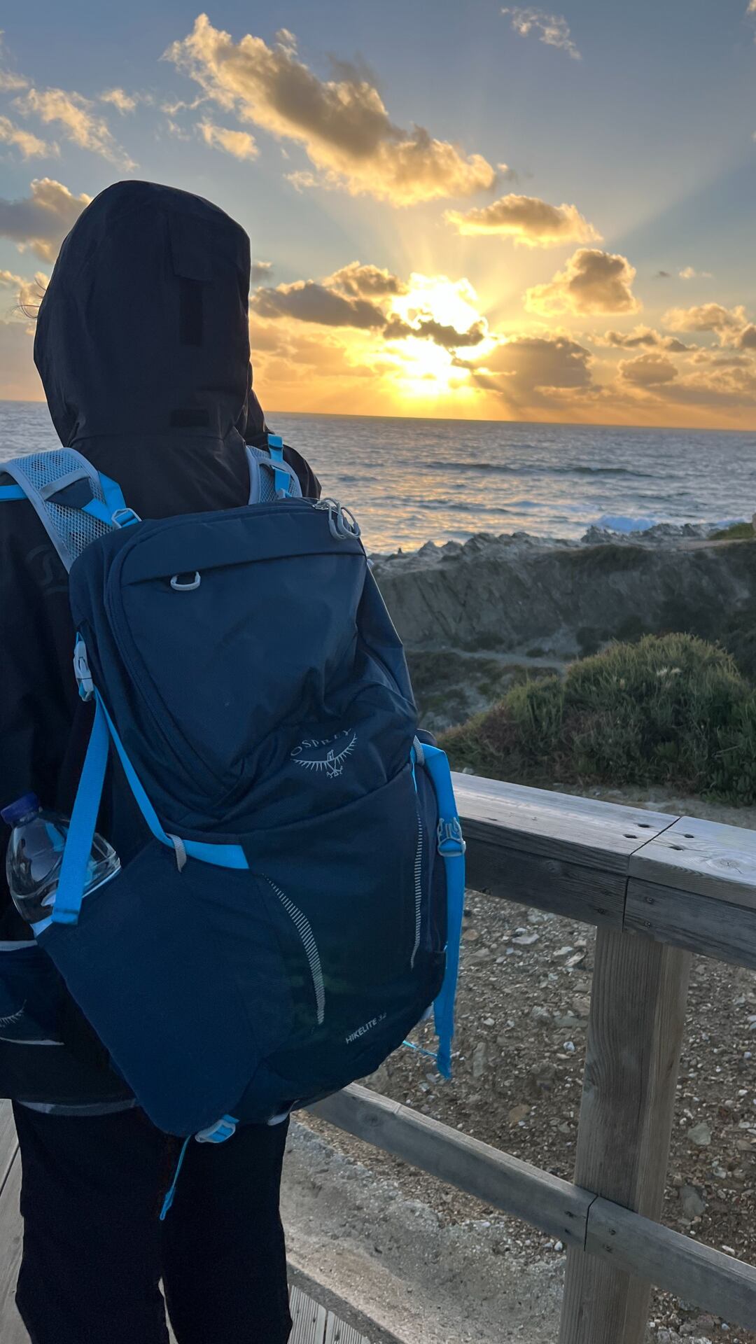 Náš batoh Hikelite 32 Uni nejdříve otestovala moje 16letá dcera na týdenním treku Fisherman´s Trail (Rybářská stezka), podél portugalského pobřeží. Tam jsme jako dívčí a dámská výprava vyrazily začátkem května 2024. Pohodovým výletním tempem jsme ušly za 5 dní celkem 75 km. Bylo nezbytně nutné, aby se dceři do batohu vešel především spacák (třísezónní 1 kg), karimatka, lehké letní oblečení (kalhoty, mikina a tenká větrovka), hygiena, 1,5 l lahev na vodu a svačina maximálně na 1 den.