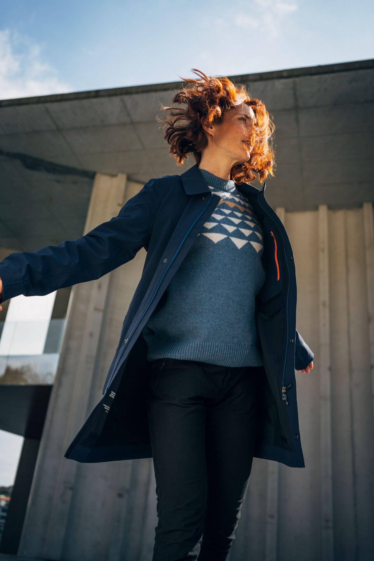 Softshellový kabát, elegantnější kalhoty a boty na podpadku Docílíte elegantnějšího vzhledu s vyvážením mezi funkčností a sofistikovaným městským stylem.