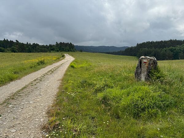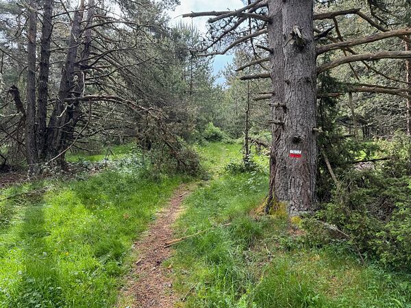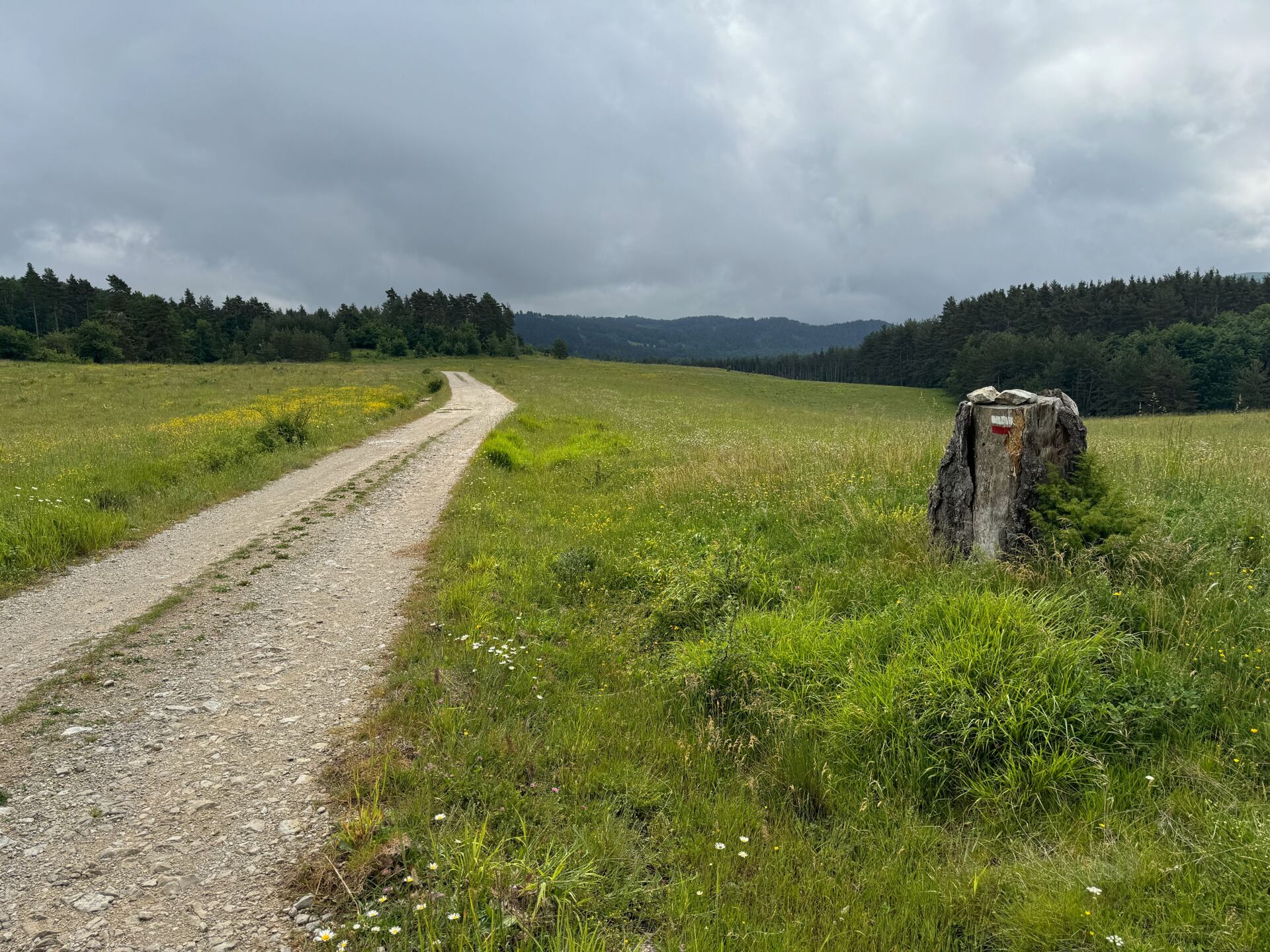 Většina dnešní trasy se vine v lese a po travnatých hřebíncích ve výšce kolem 1 500 metrů. Fouká vítr a do toho pálí slunko, což je ideální kombinace na spálení. Nepřestává mě udivovat, že je tu stále minimum kamenů a cesty nejsou téměř vůbec technicky náročné.