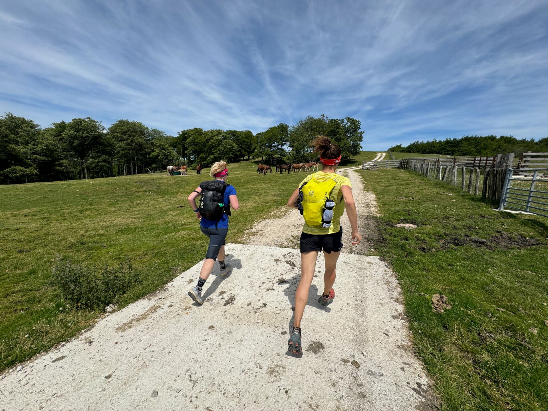 Začínáme hezky zostra a hned druhá část přeběhu se nese ve znamení královských parametrů v podobě více než 44 kilometrů a 1 700 metry převýšení. Ráno startujeme v 8:00 a překvapuje mě, že je většina kopců relativně běhatelných.