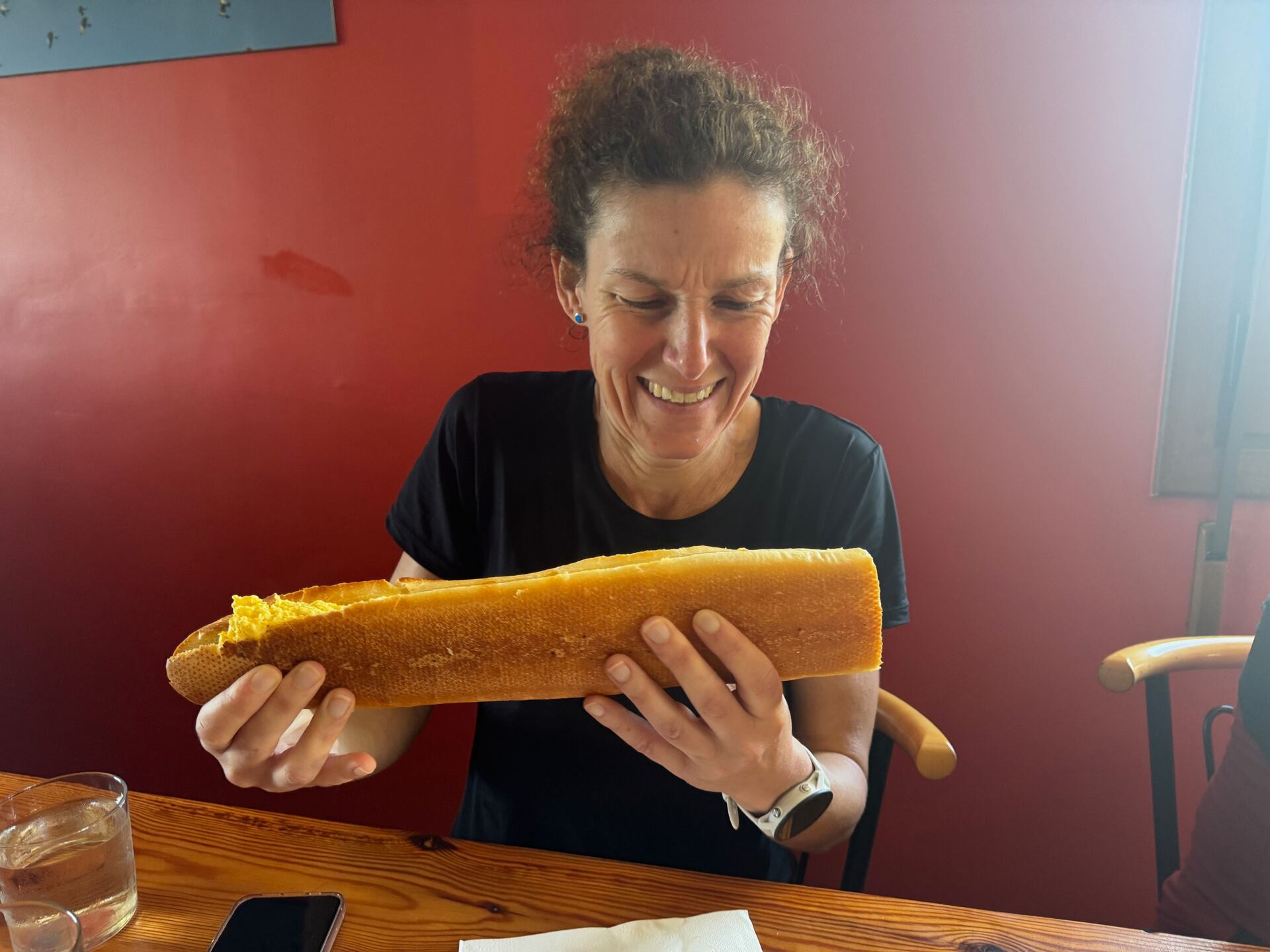 Sem tam člověk protne nějakou tu ospalou španělskou vesnici a jelikož je zrovna neděle, jsou všechny obchody zavřené. Máme štěstí, že v polovině trasy narážíme na skvělou restauraci, kde si dáváme bagetu o velikosti dětské paže a valíme dál.