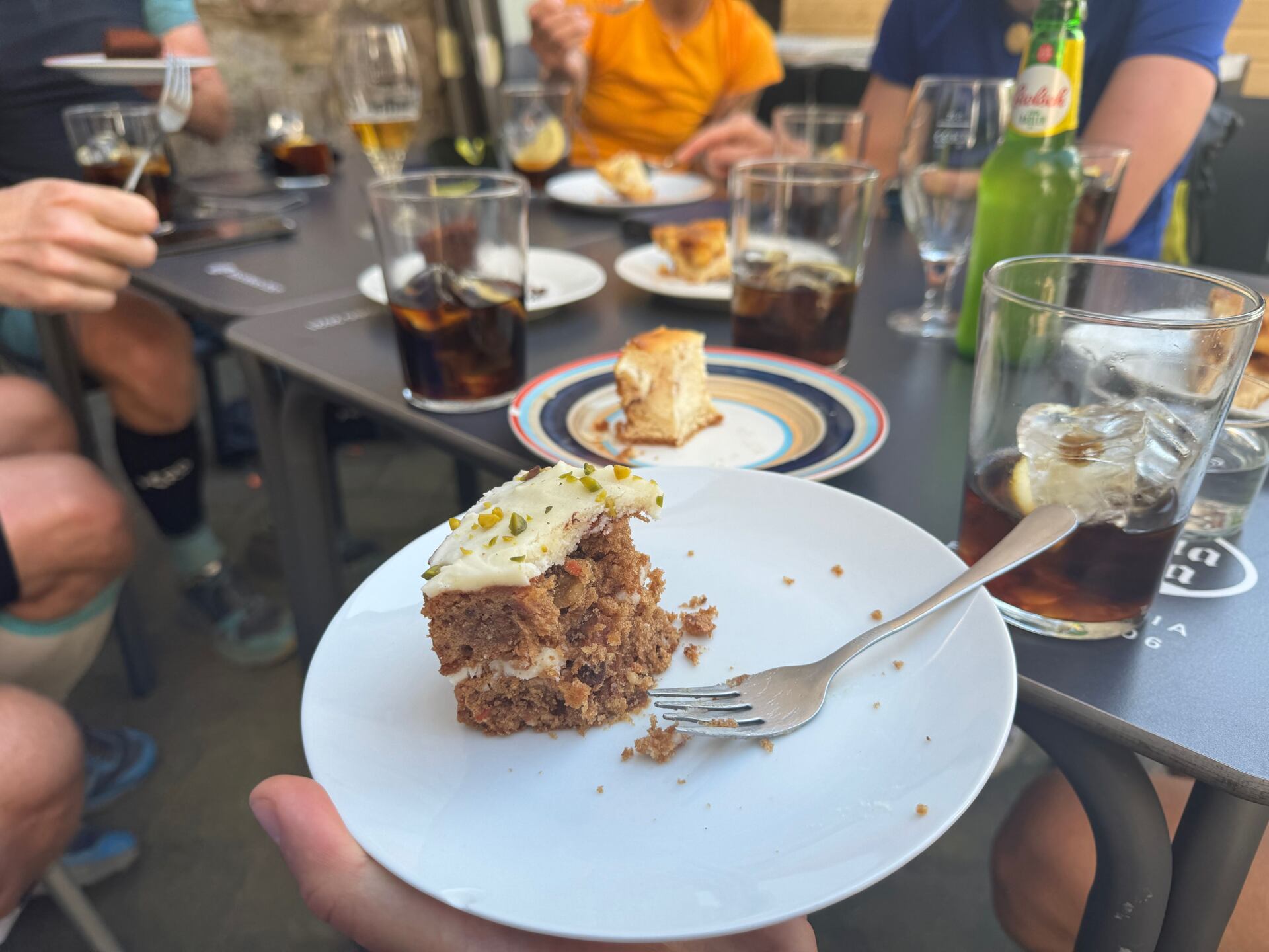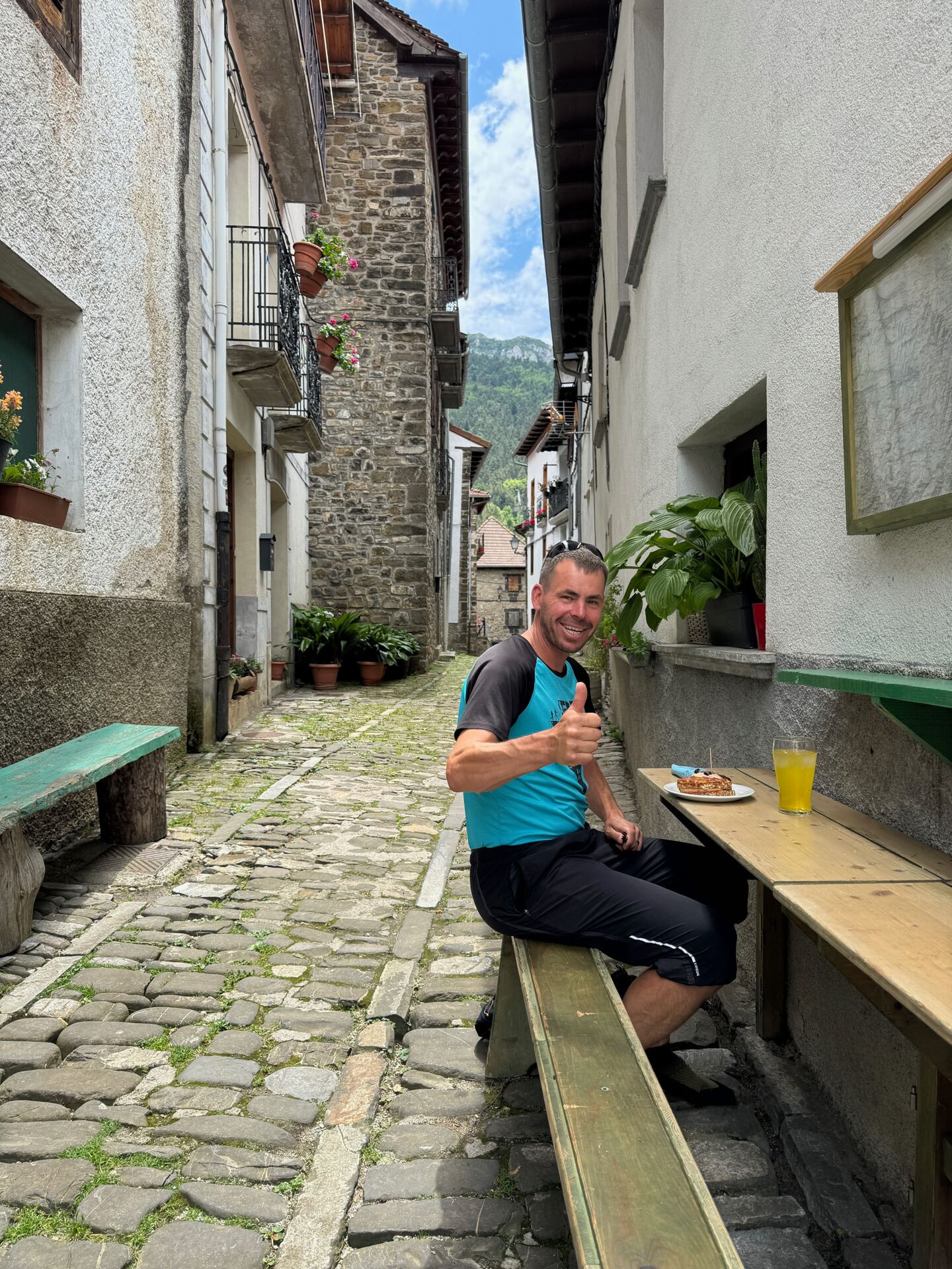 Na závěr přibíháme do malebného městečka Auritz-Burguete, které nás vítá lahodnými dortíčky a vychlazeným pivem. Obžerství na běžeckých výpravách není hřích, ale kalorická povinnost.
