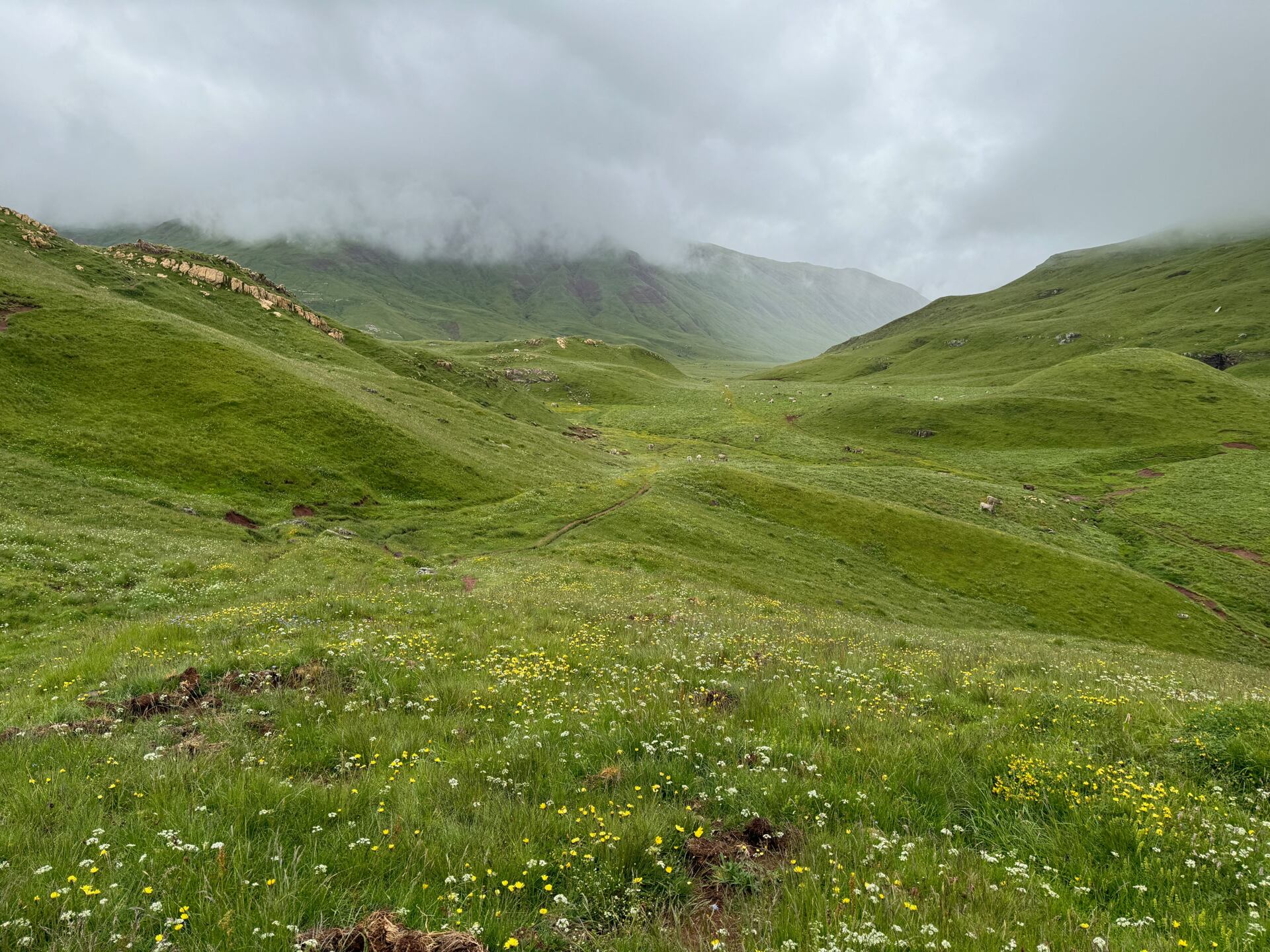 Je sympatické, že při zdolávání GR11 má člověk pár dní na rozkoukání, než se dostane do těch opravdu náročných technických pasáží a většinu času tak trávíme na travnatých hřebenech hor.