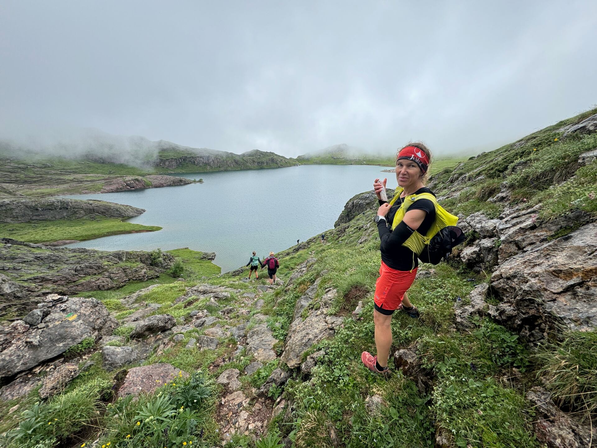 Překonáváme fotogenické mokřady u pramene řeky Aragón Subordán a z měkké hliněné podložky se začíná stávat kámen a skála. Zpomalujeme, protože je cesta čím dál tím více techničtější. Netrvá dlouho a přebíháme na francouzskou část trailu protínající Národní park Pyreneje.