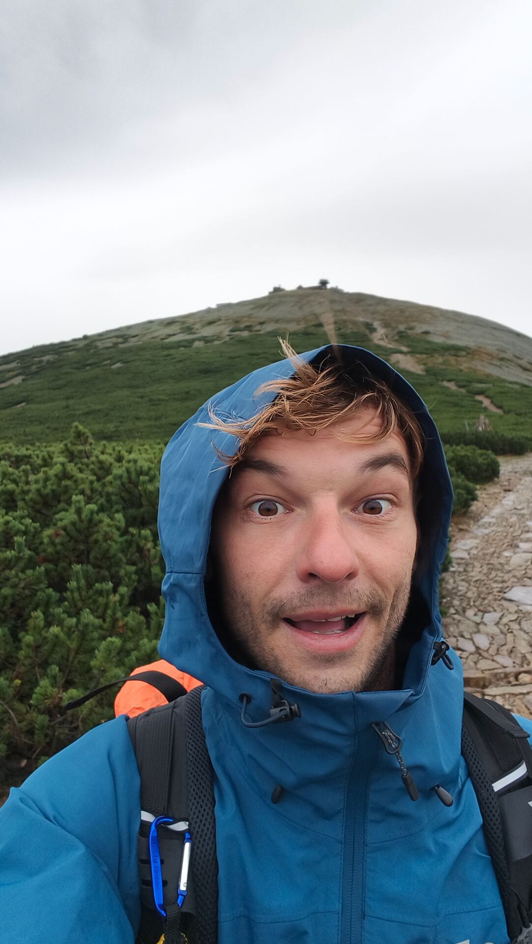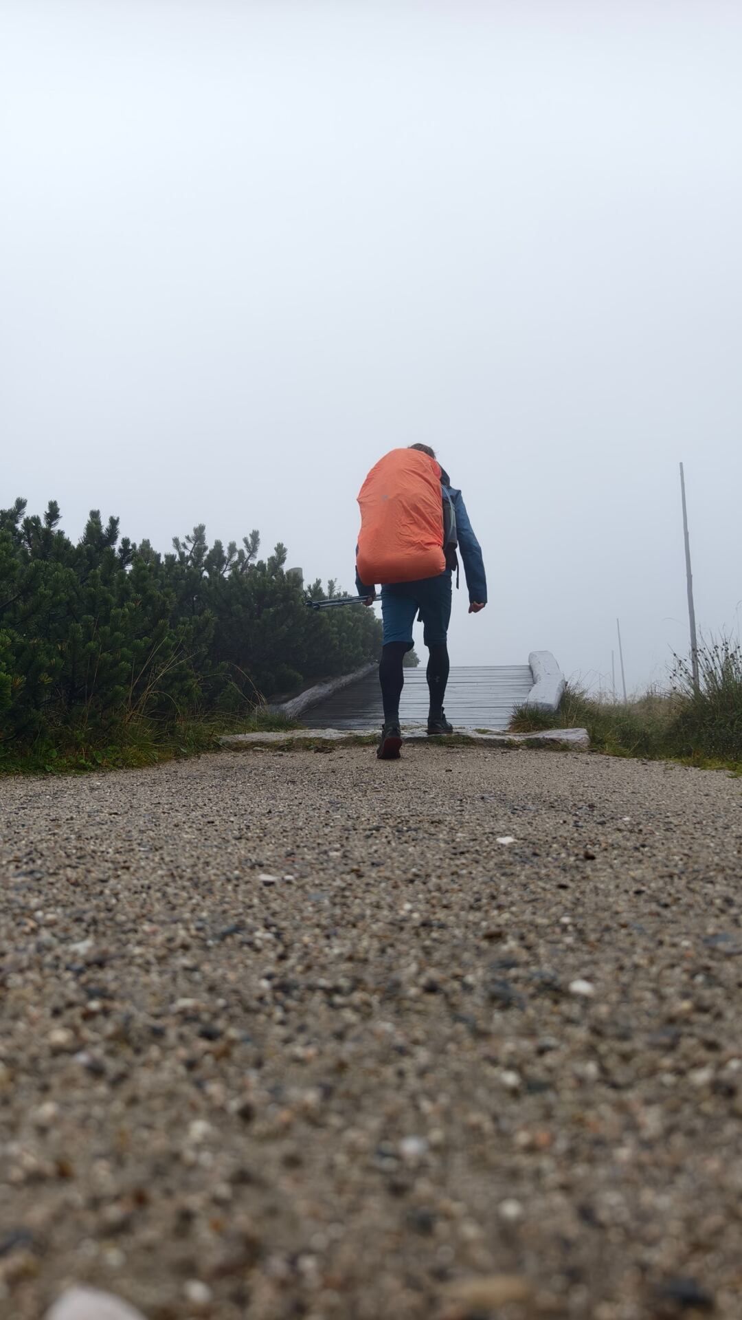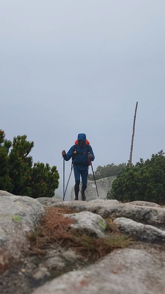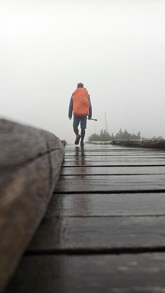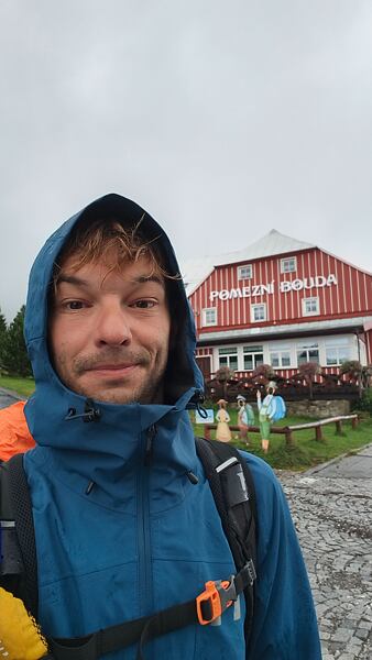 Čtvrtý den mě přivítal nehostinným krkonošským počasím – mlha, vítr a déšť. Přesto jsem odpoledne vyrazil na vrchol Sněžky. Cesta vedla kolem Petrovky, Špindlerovy a Luční boudy. I když mlha zakrývala většinu výhledů, postup do vyšších poloh měl své kouzlo – poryvy větru, nekonečné klapkání kapek deště a opuštěnost krkonošských plání.