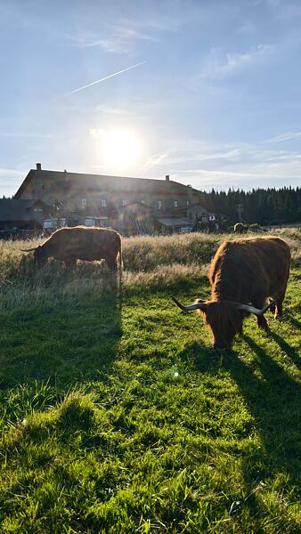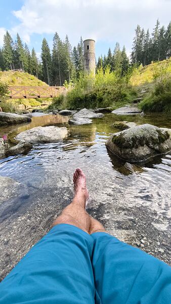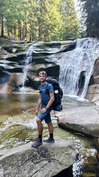 Třetí den jsem vyrazil směr Harrachov, kde jsem doplnil zásoby. Odtud jsem zamířil k Mumlavskému vodopádu, který je jedním z nejkrásnějších přírodních klenotů Krkonoš. Jeho hukot a masivní proud vody mě znovu nabudil energií. Další část trasy vedla přes rozcestník u Čtyř pánů, kde se otevřely úchvatné výhledy na krkonošské hřebeny.