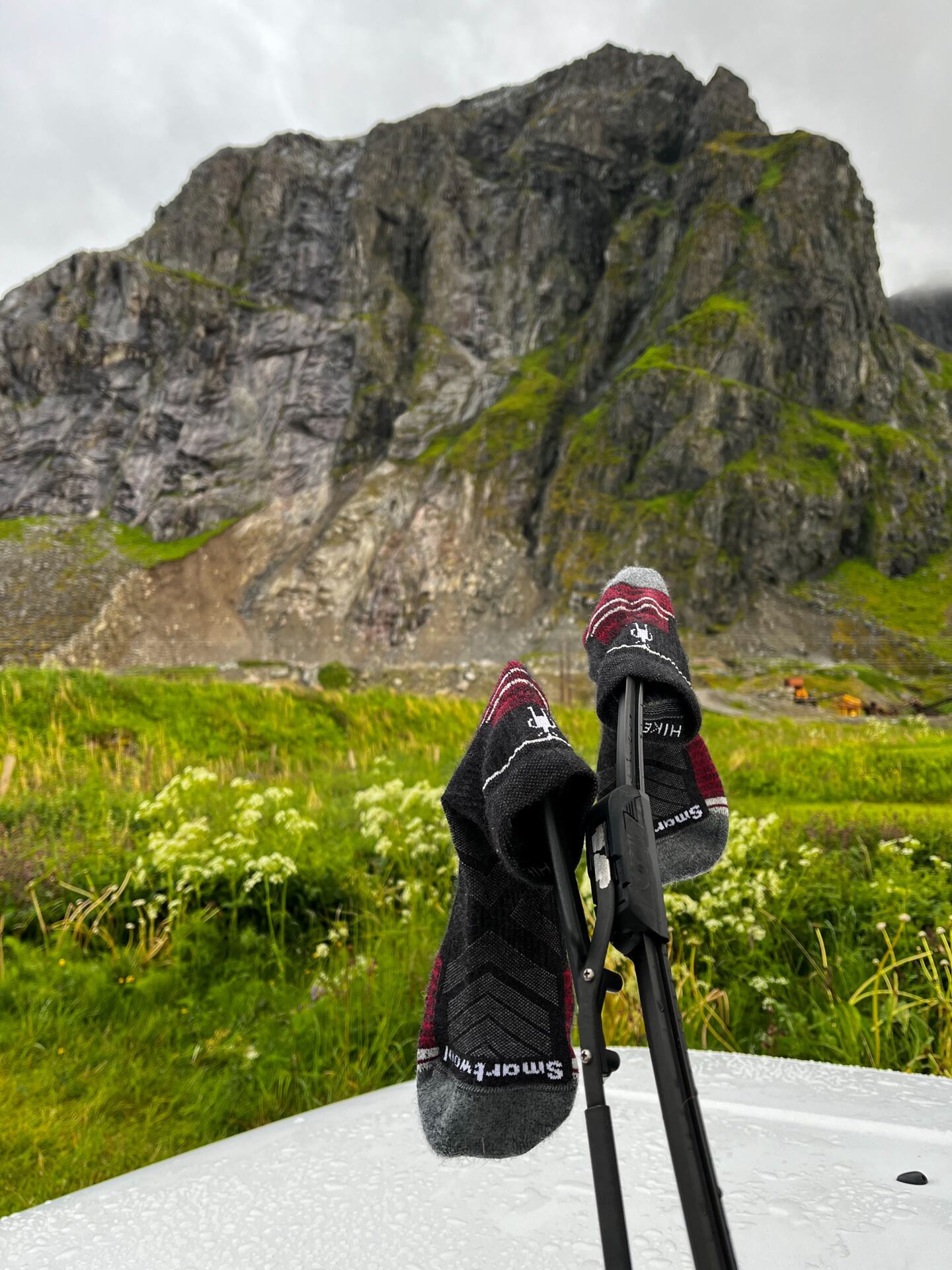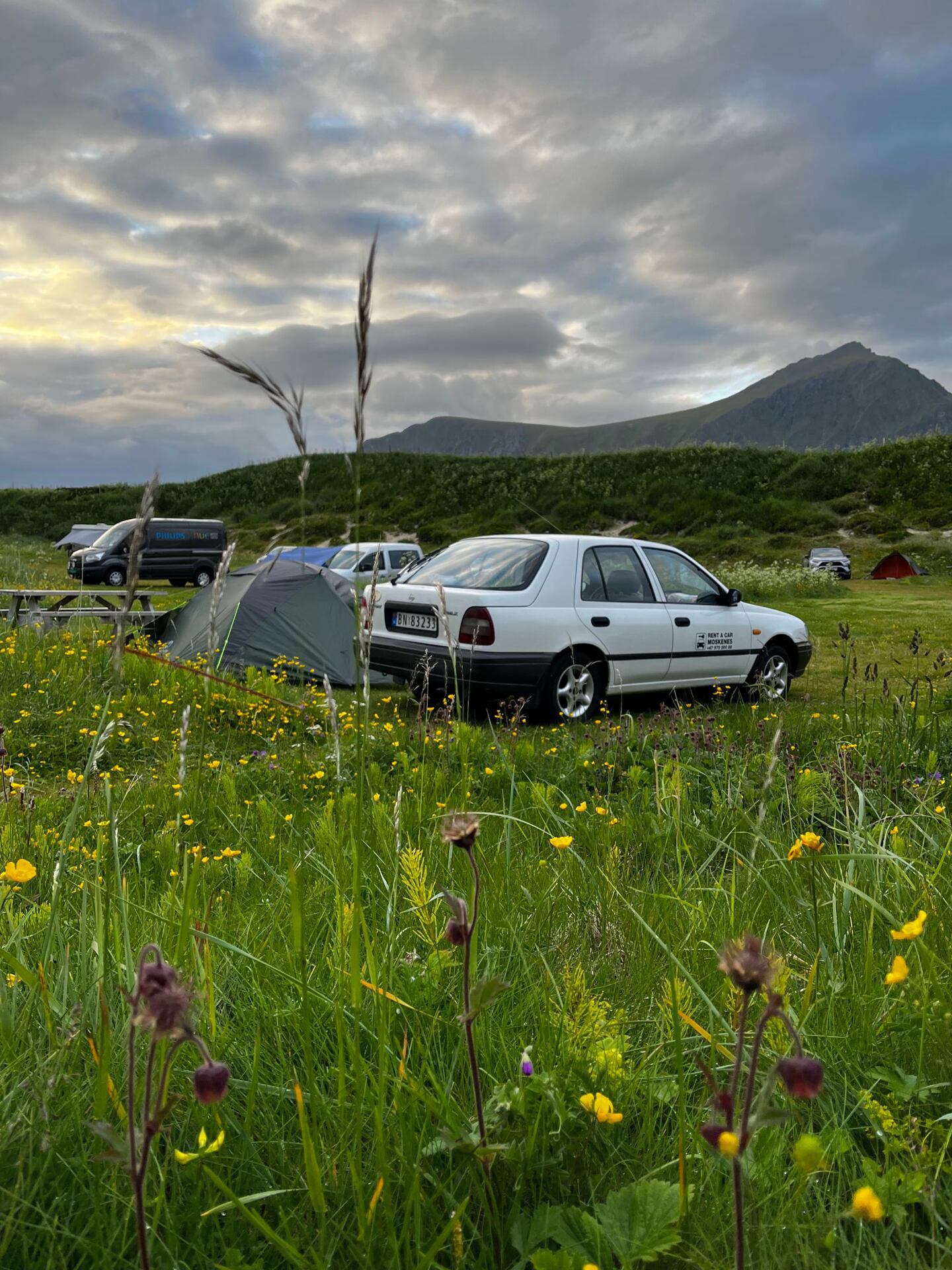 O to vtipnější to celé ještě bylo, když před nás majitel autopůjčovny s obrovským nadšením přivezl svůj starý Nissan Sunny. Vedle luxusních obytných dodávek, kterých byly Lofoty plné, jsme působili poněkud legračně, ale pán měl pravdu – to auto jsme si naprosto zamilovali. Součástí výbavy byla kazeta tamního folkového zpěváka Halvdana Silverstena, který byl skvělým podkresem při přejezdech vysokých mostů mezi fjordy a morální vzpruhou do propršených dnů.