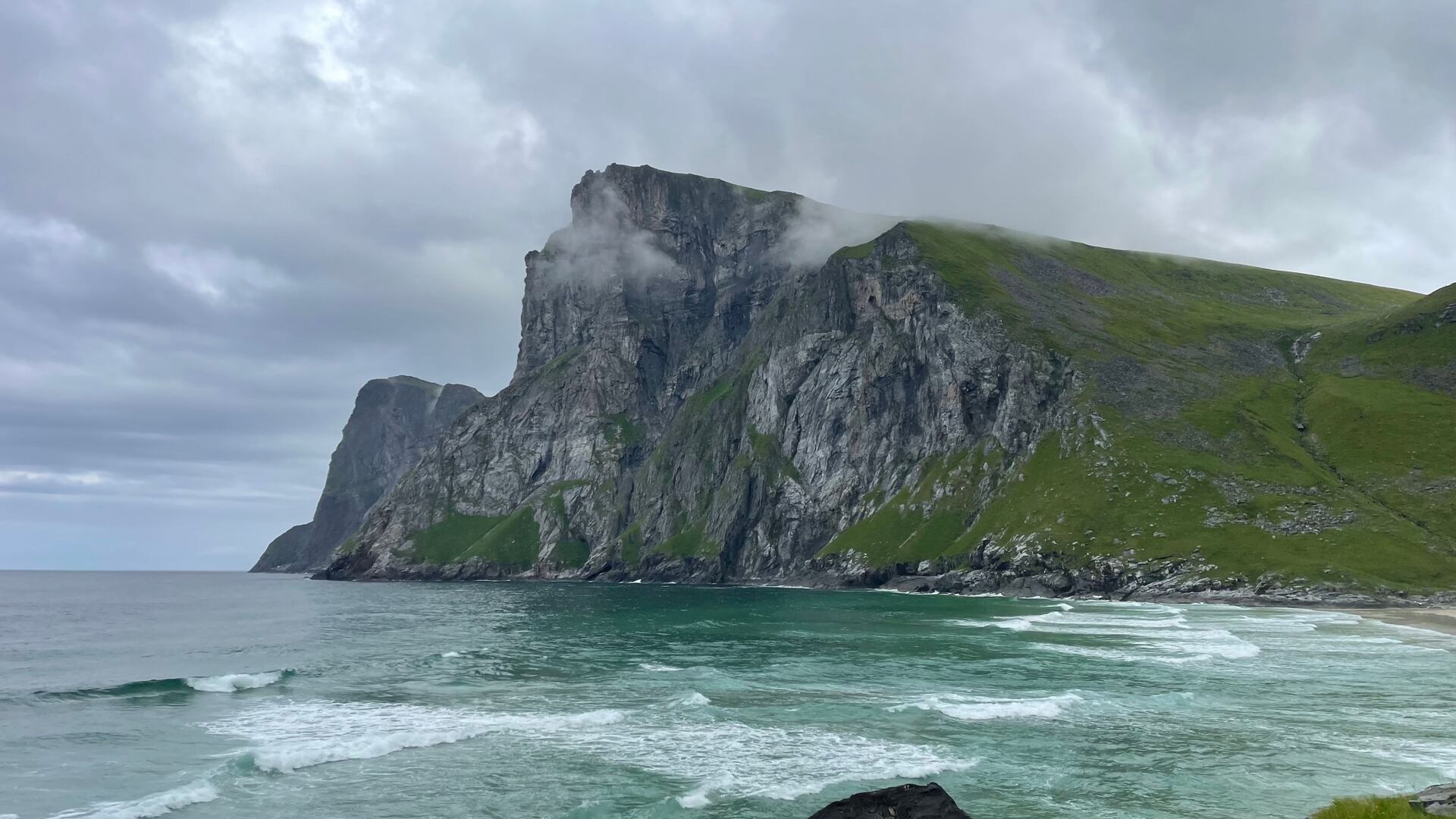 Pokaždé, když už jsme se díky počasí začali cítit opravdu zoufale, vše se během několika málo chvil obrátilo o 180 °. A tak jsme si z ničeho nic užili vyloženě tropický den a koupání na známé Haukland beach.