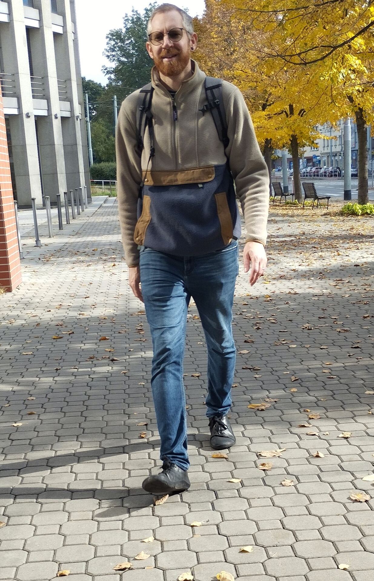 Střih je v těle poměrně široký, mikina rozhodně není určena na běhání a podobné atletické disciplíny. Jestli ji kromě schopnosti vás zahřát ještě něco charakterizuje, tak je to pohodlí. Člověk není sevřený v přiléhavém „trikotu“, a prostě si hoví. Díky zipu přes celý hrudník mikinu obléknete jedna dvě. Rád bych vyzdvihl ještě jednu jeho přednost. Anorak má stojáček a zip je hrubý kostěný, což oceňuji, protože mezi zuby jsou velké mezery a nezachytávají se mi v něm vousy, když ho nemám úplně dopnutý.