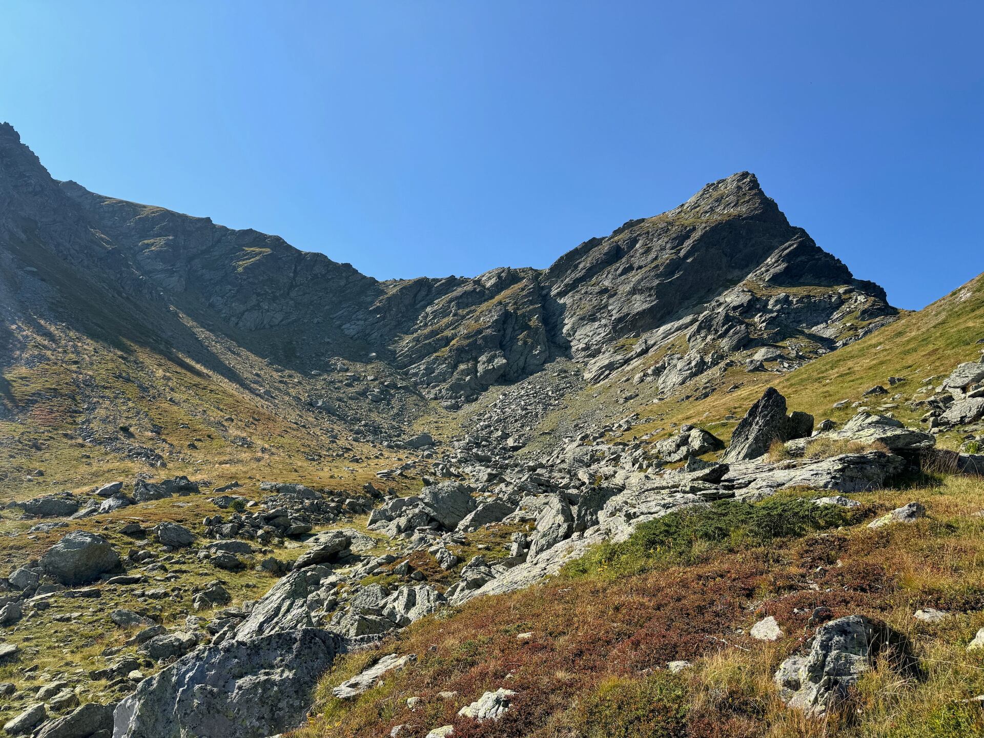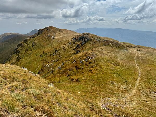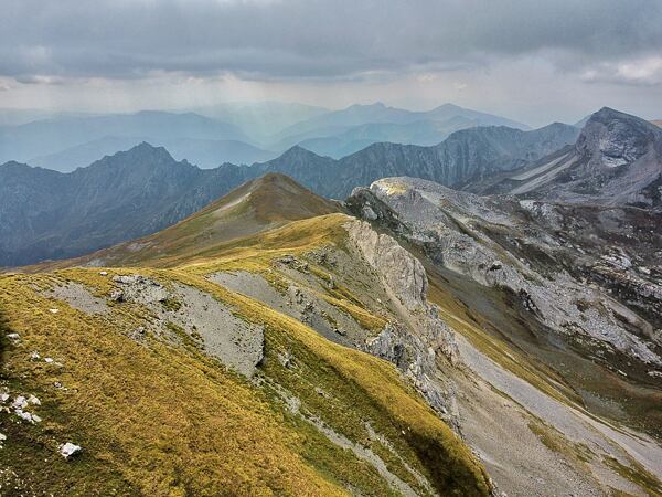Ačkoliv se Midžur jeví jako papírově nejjednodušší vrchol, zdání může klamat. Myslíme si, že poslední kopec bude dávačka, a ono ejhle. Tmavý bouřkový mrak se držel hřebene jak slepice flusu a museli jsme si výstup poctivě vyčekat.