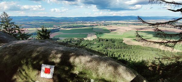 Další zážitek jsem měl v Adršpachu, kde se mi poprvé hodil šátek na hlavě Rock Point/Stezka Českem. Do Ádru se totiž jen tak nedostanete, nemáte-li zakoupenou vstupenku dopředu a na určitý čas. A to jsem netušil. Šikovný Stezkař si však poradí, atak jsem prošel krásným Ádrem a hned poté snad ještě krásnějšími Broumovskými stěnami. Tam byl terén místy až lezecký a já přemýšlel, jak se tu asi chodí lidem s trekovými holemi.