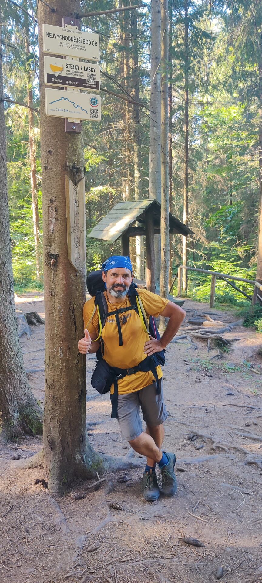 Bláhová byla představa že budu mít jedny boty na všechny terény na celých 1000 km (plus sandále). Nakonec jsem to nějak přetrpěl, ale „au au…“. Na konci mého Stezkařského „výletu“ už čekaly Beskydy a s nimi klasické kopce nahoru a dolů. Ne nadarmo se v Beskydech běhá závod „B7“. Takový Velký Javorník, Smrk, Lysá hora, jsou skutečně pikantní lahůdky. Pak už stačilo přeskočit jen Mosty u Jablunkova a přivítal mě cíl celého snažení: nejvýchodnější bod ČR. A to dokonce ještě s jednodenní rezervou.