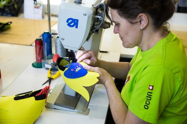 Když tam vstoupíš, tvoje smysly ovládne pravidelné staccato popojíždění jehel šicích strojů, teplé zářivkové světlo a jemný zápach lepidla. V šicí dílně se odehrává první polovina výrobního procesu. Šijí se tu tzv. svrchy. To jsou textilní části lezeček.