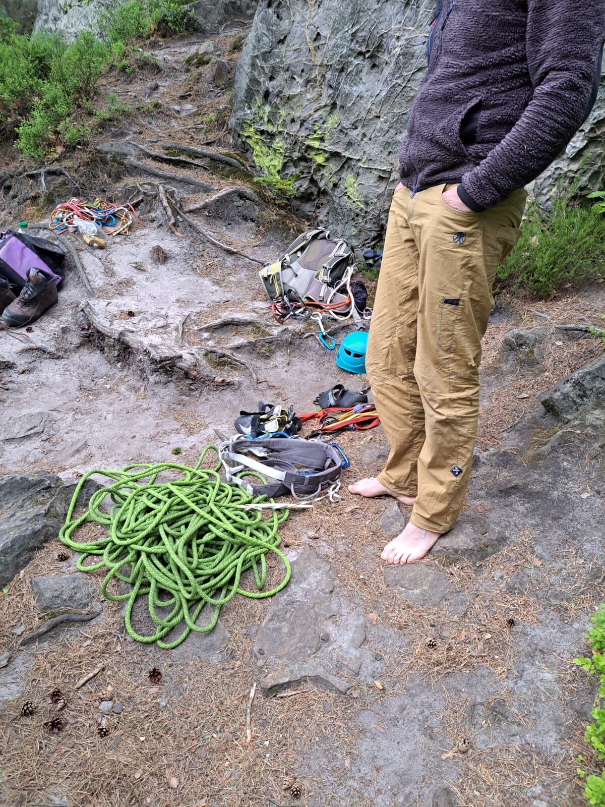 K testu nových kalhot na lezení jsem chtěl přistoupit poctivě, ale zároveň je pokud možno neroztrhat. Kalhoty jsem se rozhodl vzít i na pískovec, který „žere“ všechen materiál tak nějak rychleji. Pár děr se mi skutečně povedlo během testu udělat, ale výsledný pocit to nekazí.