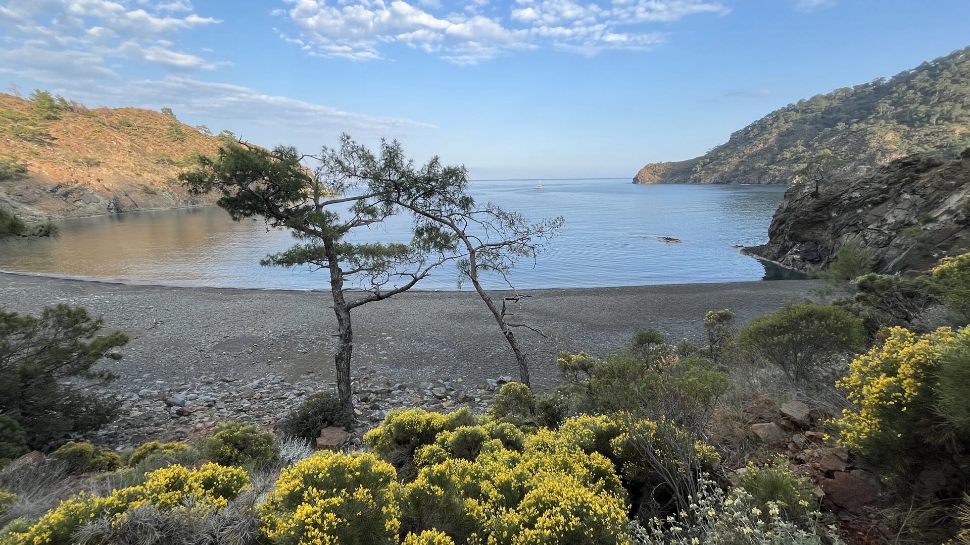 Poměrně hodně úseků na Lýkijské stezce vedlo borovicovými háji, které poskytovaly, nám poutníkům, příjemný stín. To se hodí, protože v létě tu mohou teploty vyšplhat až na 40 °C.