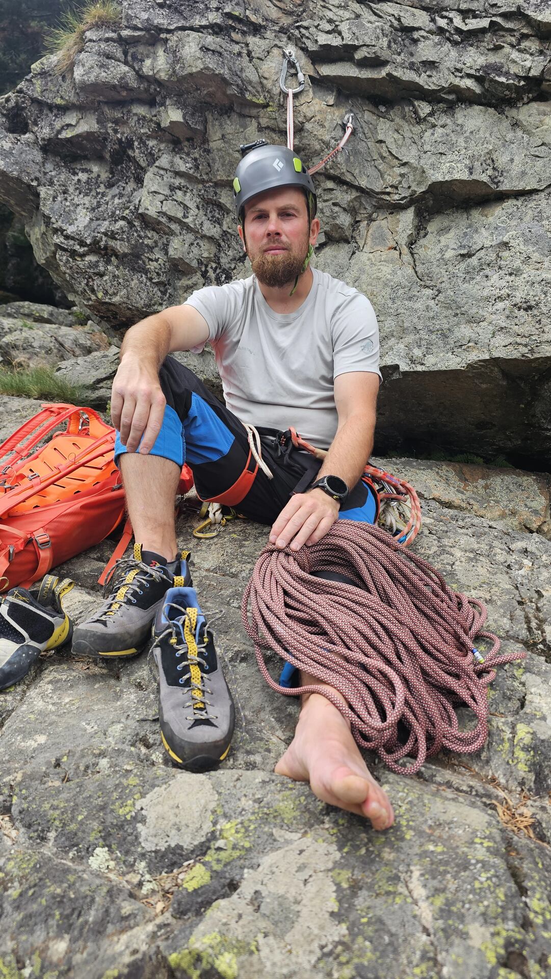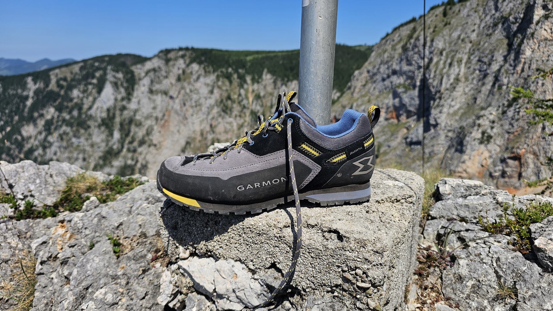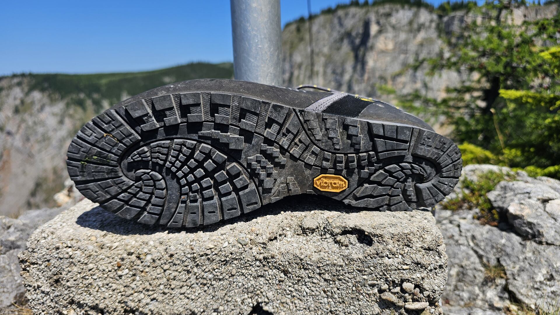 V Höllentalu to bylo 1 500 výškových metrů nahoru lehkým ferratovým a skalním terénem. Na skále to drželo fakt dobře. Jako bych měl na nohách větší lezečku. Před sestupem si vždy upravím šněrování. Nechci mít na palcích puchýře. Utáhl jsem tkaničky a noha byla dostatečně zafixována, aby se neposouvala při náročném sestupu po skalním hřebenu.