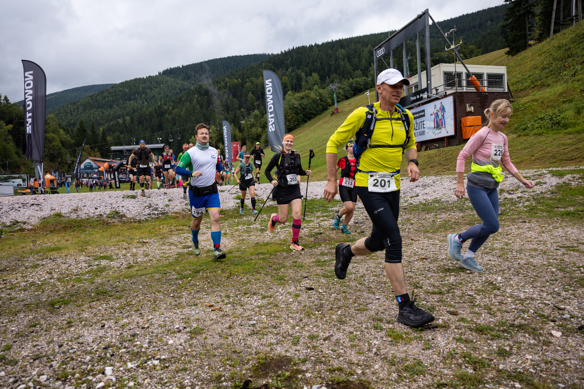 Každá z tras měla své kouzlo – prudké výběhy, kamenné nerovné úseky, hřebeny s výhledy i pasáže, kde čekal lehce rozbahněný terén a vyžadoval maximální koncentraci. Panovaly příjemné teploty, i když na chvíli běžce pokropil déšť. Nechyběly občerstvovací stanice, kde se kromě doplnění energie rozdávaly i úsměvy.