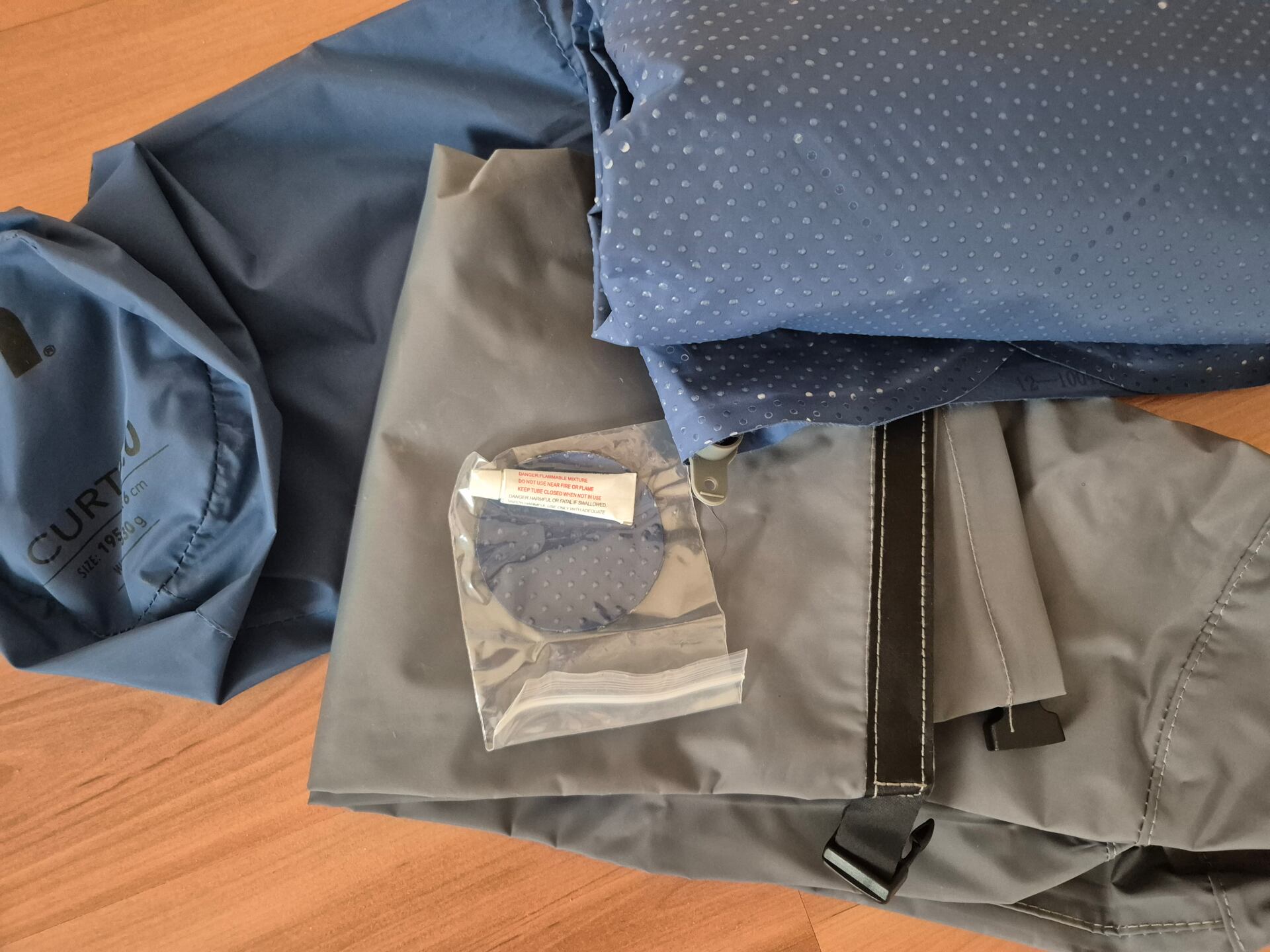 Karimatka je dodávána krom klasického obalu také s vakem pro nafukování a opravnou sadou