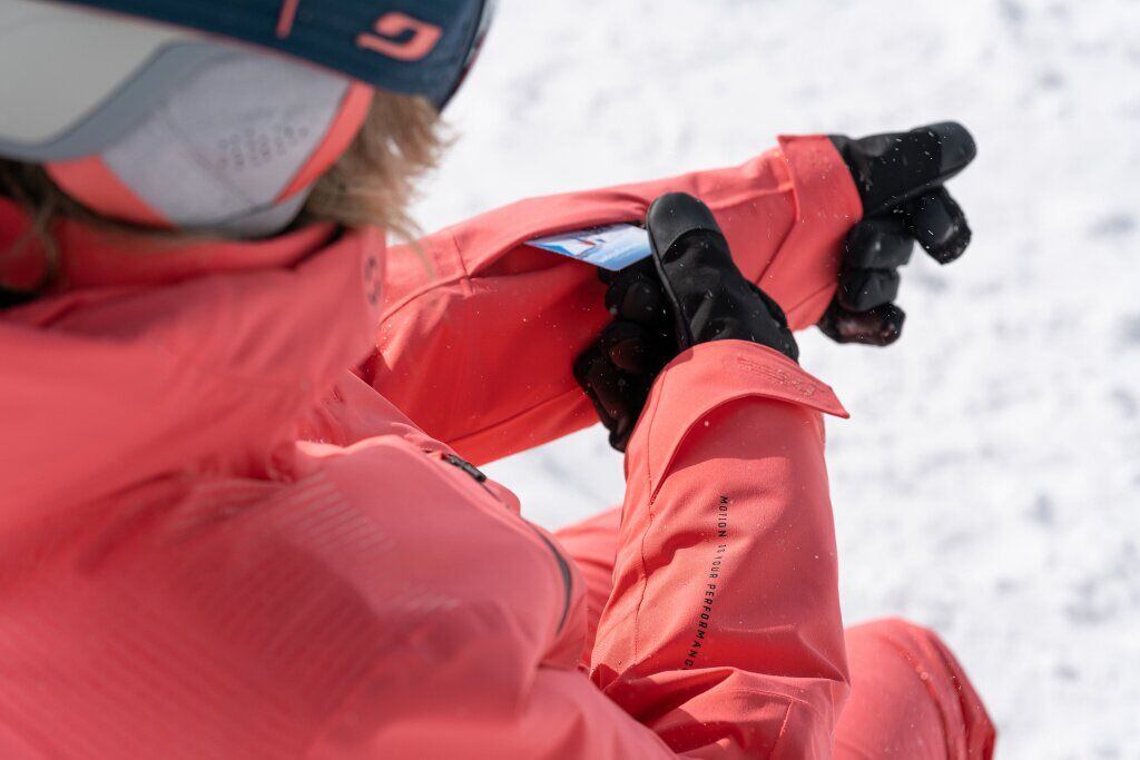 Praktická je kapsa na skipas umístěná na levém rukávu