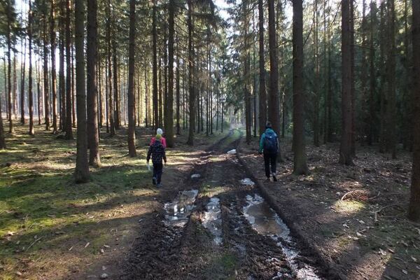 okruh 4,5km byl vybraný v lese (po lesních cestách),
