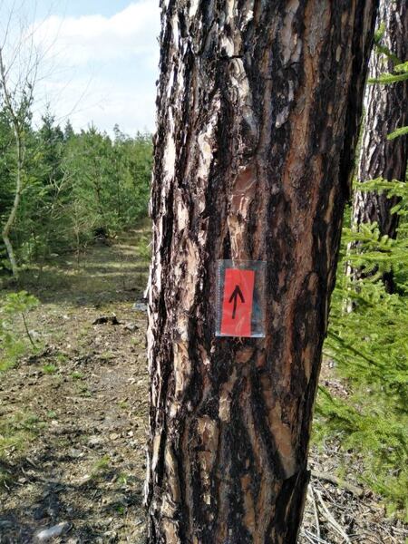 vytištěné šipky byly umístěné víceméně jen na křižovatkách nebo nepřehledných úsecích (my použili šipky, obrázky zabalené v nepromok folii, napínáčky - krátké, aby nepoškodily stromy a šly opět odstranit!)