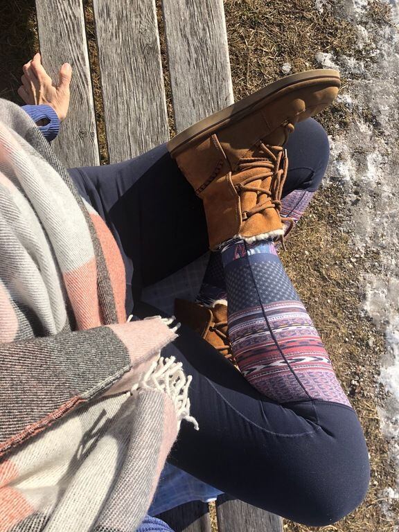 Pokud cítíte potřebu se hýbat i v lyžákách, proč ne. I já blbnu s lyžařskými botami na nohou, prosím, jen buďte opatrní a neberte to jako návod.