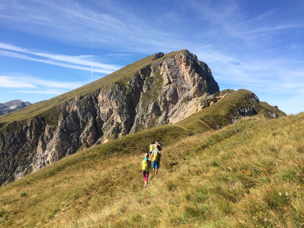 Většina dalšího dne je zaměřená na turistiku a pohyb v horách. Každý máme k dispozici mapku s vyznačenou trasou a střídáme se ve vedení skupiny. Pozor na to, protože v itálii je každá turistická trasa značená červenou barvou, takže podle toho se úplně orientovat nejde. Naším cílem je vrchol Hochalpenkopf (2542 m n. m.).