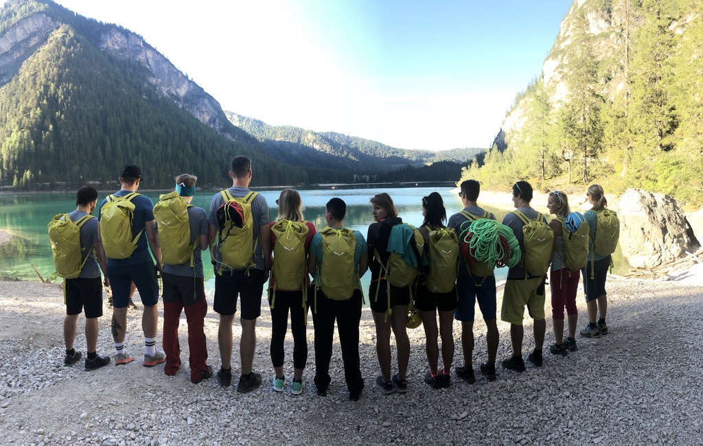 Smočení u jezera Braies je za odměnu. Naši horští průvodci si nás během dne mohli zhodnotit a večer nás seznámili s plánem na další den.