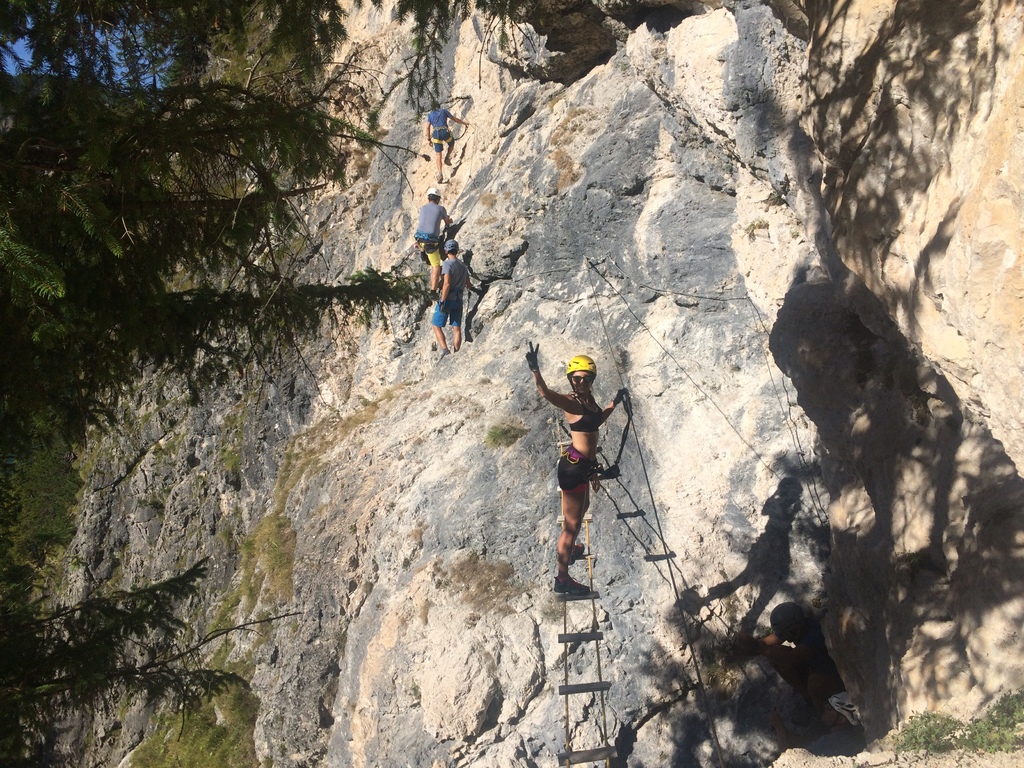 Tím však všechny naše aktivity nekončí. Jako zpestření na nás čeká ještě jedna ferrátka, která je zakončena spouštěním na laně. A pro začátečníka, který si to zkouší poprvé, to je opravdový adrenalin. Důležité je dobře se přicvaknout a udělat první krok do prázdna...