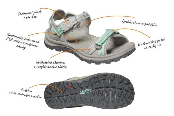 Sandály se hodí do mírného terénu, k vodě i do města. Voděodolná popruhová tkanina s rychleschnoucí podšívkou zajistí rychlé proschnutí namočeného sandálu. Díky kvalitní stélce zase budete mít pohodlný došlap a maximální komfort i při celodenním putování po městech, hradech i zámcích.