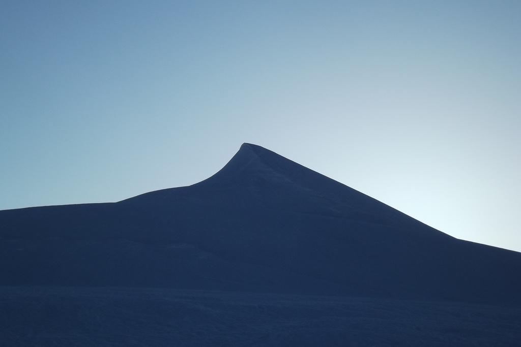 Noční výstup na Kebnekaise. (foto z mezivrcholu Vierranvárri, v pozadí vrchol Tuolpagorni). Výstup a sestup nám zabral dohromady 11 hodin.