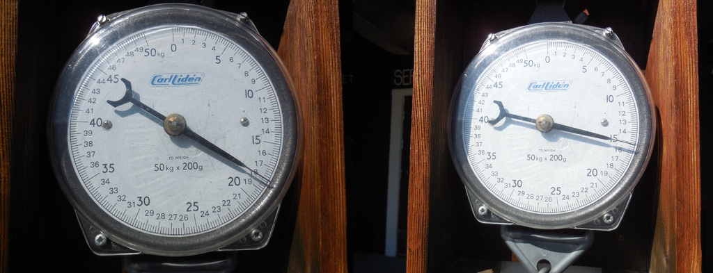 Váha našich batohů po snězení téměř všeho jídla, 20 km před koncem.