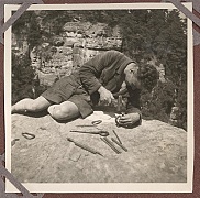 Kdo se chce vrátit do časů předválečného pískovcového lezení, může se začíst do knížky Kamarád ze skal, která je ve svém druhém vydání obohacena ilustracemi Theodora Pištěka. Děkujeme Borisi Hlaváčkovi z vydavatelství Asa, které knihu vydalo, za poskytnutí archivních snímků Josky Smítky.