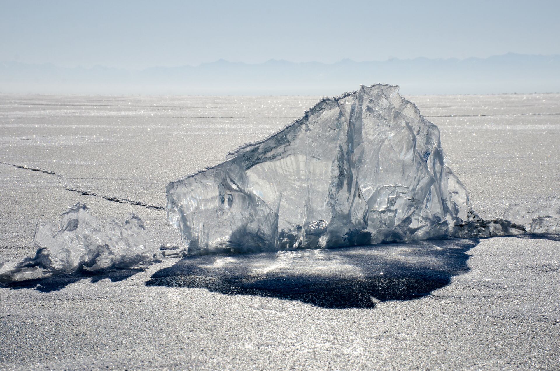 Praskání ledu. Na rozdíl ode mě, led na Bajkale neustále pracuje. Rozpíná se a praská kvůli častým zemětřesením. A když říkám “neustále”, tak myslím fakt pořád.