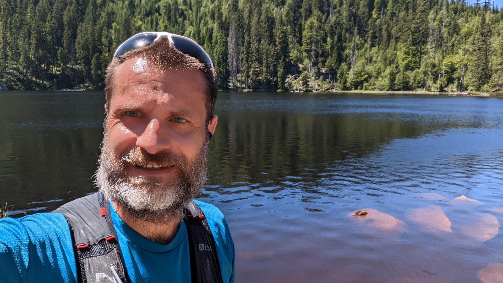 Při přeběhu Šumavy, u Prášilského jezeraJak moc náročná se ti výzva „napříč Šumavou“ zdála? Měl jsi natrénováno?