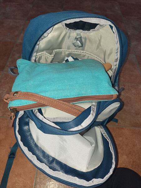 Batoh má 2 hlavní kapsy na zip, dále 1 kapsu otevřenou a 1 malou kapsu na drobnosti - celkem tedy 4 kapsy. V hlavní komoře se nachází i prostor pro menší notebook, ale ten jsem využila jen na dokumenty k cestě.