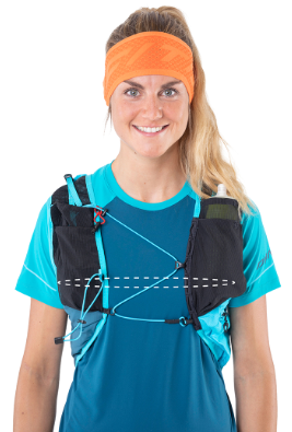 Kompaktní běžecká vesta pro běh na krátké až střední vzdálenosti, se dvěma měkkými lahvemi o objemu 500 ml.
